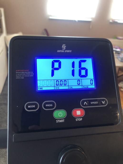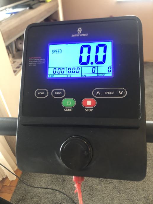 Na displeju se prikazuju potrošene kalorije, vrijeme vježbanja, udaljenost, brzina i puls. Brzine od 1,0 do 10 km/h su individualno podesive.
