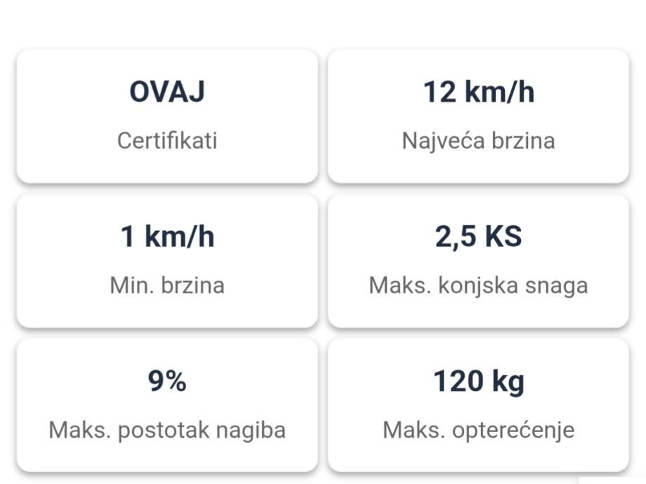 Nove trake za trcanje iz Njemacke trgovine 12 km i 120 kg sa blutom i aplikaviom kao i sa tipkama na tach a uzto i daljinski uptavljac jako tihe i sa ublazivacima udara nesto kao amortizeri, takodje sa nagibom od 3,6,9 % kao i tockice za brzo spremanje pod krevet ili gdje god!