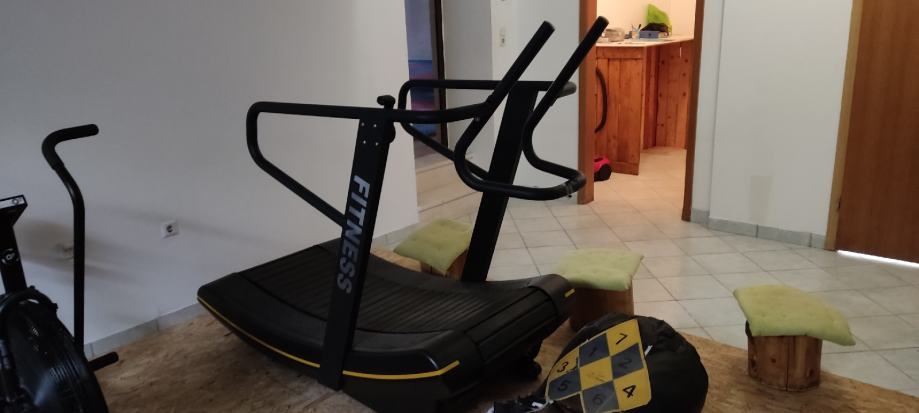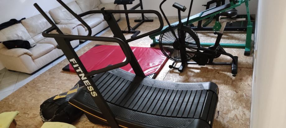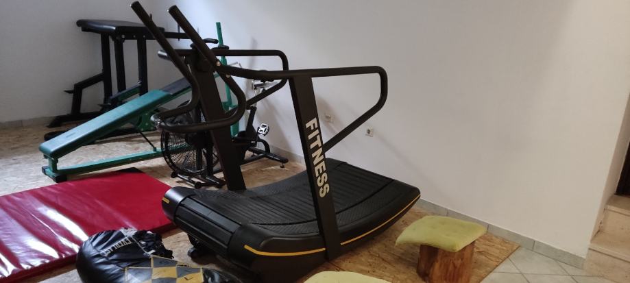 Prodaje se bezmotorna zakrivljena traka za trčanje, na sebi ima malo ostecenje na gaznoj povrsini ali ne smeta ni najmanje za vjezbanje.