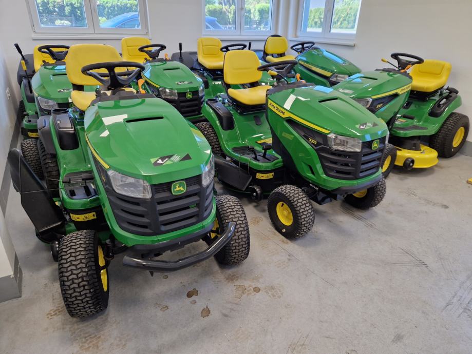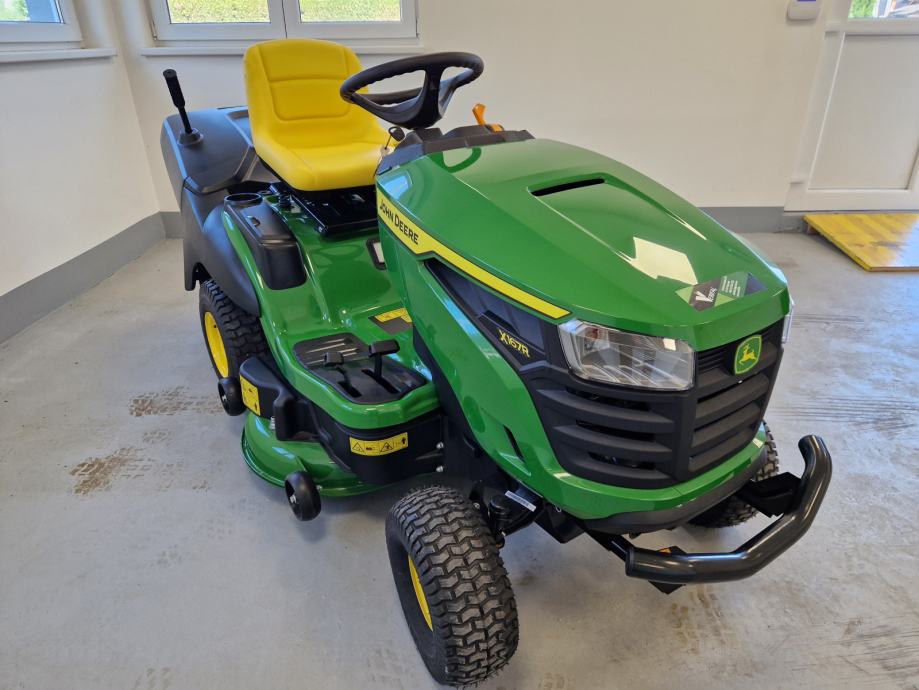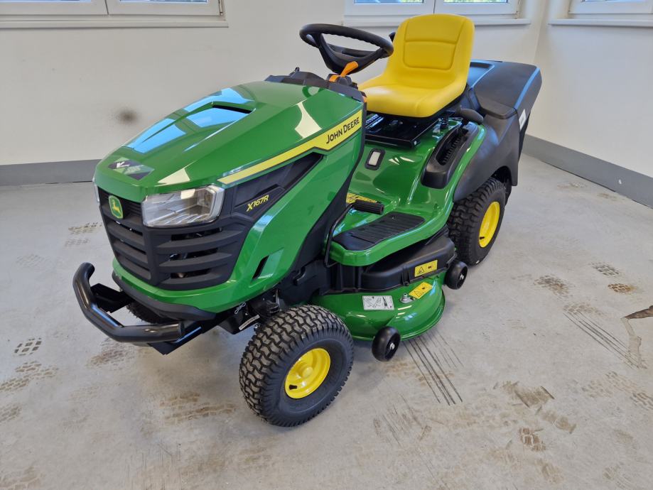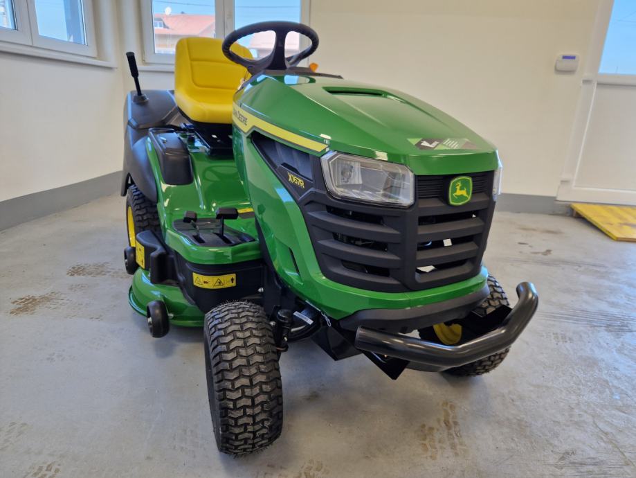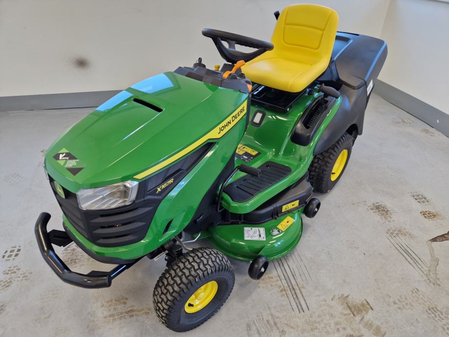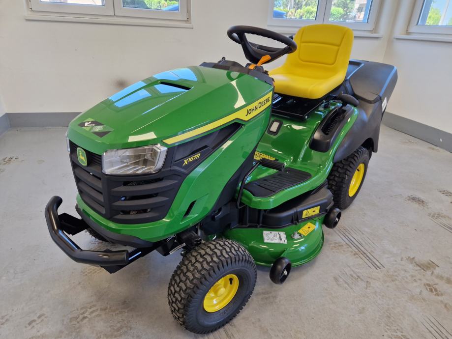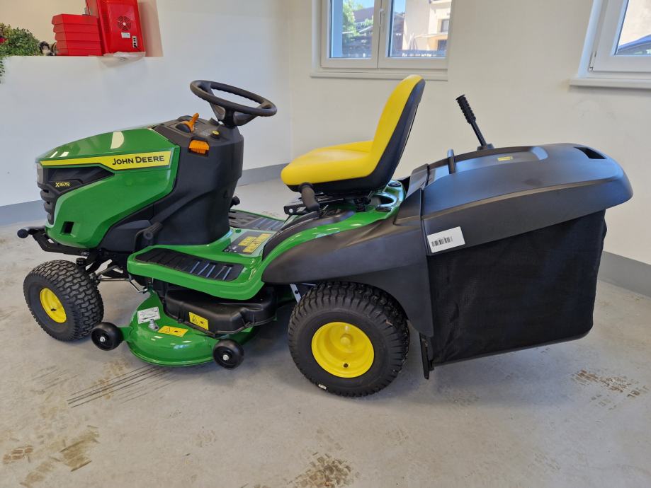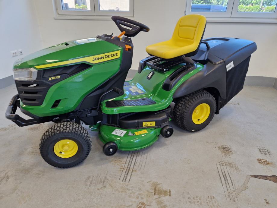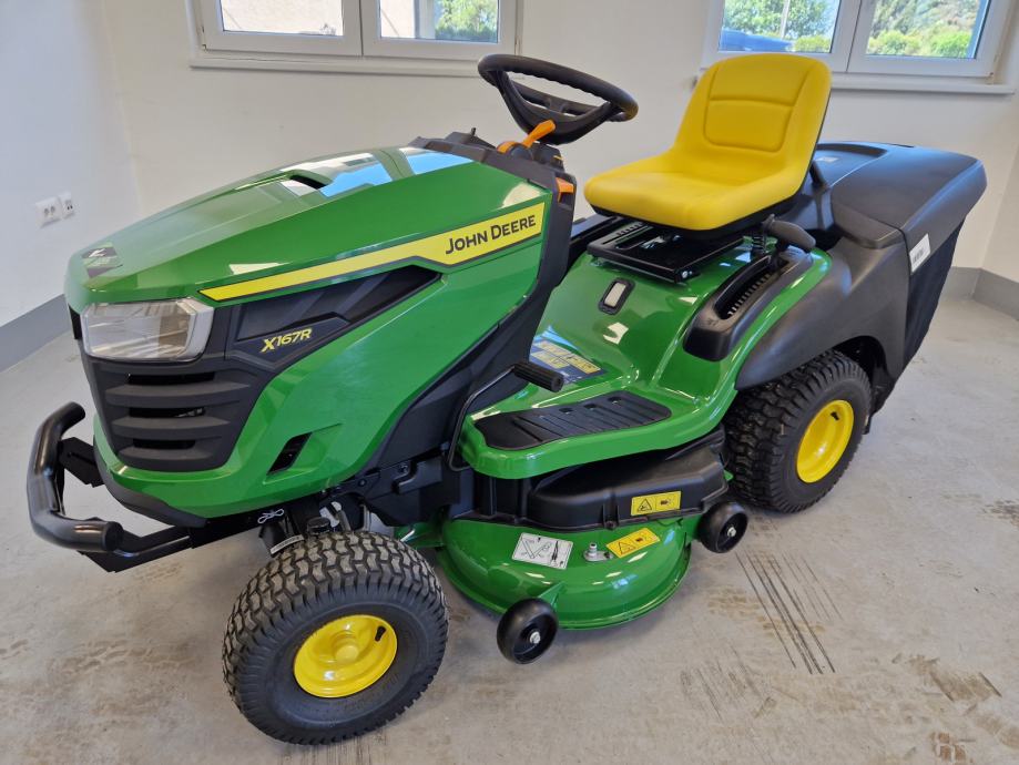 Prodaje se novi traktor kosilica John Deere X167R: 24 KS, 724 cc, 2 cilindra, B&S motor, uljna pumpa, hidrostatski pogon, kosište s 2 noža, širina otkosa 107 cm, košara za skupljanje trave trave, garancija 3 godine.