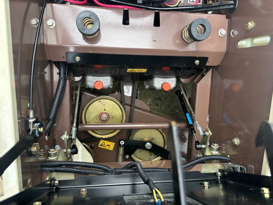 Briggs motor 24 ks 2 cilindra s uljnom pumpom, hidro getribe sa dva hidromotora na svakom kotaču, kosa sa dva noža.
