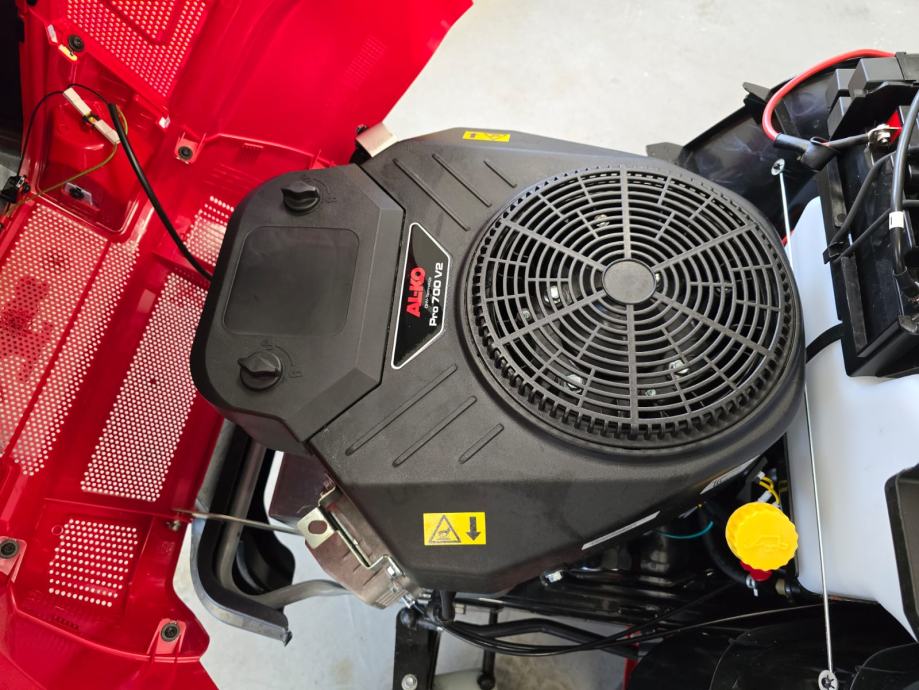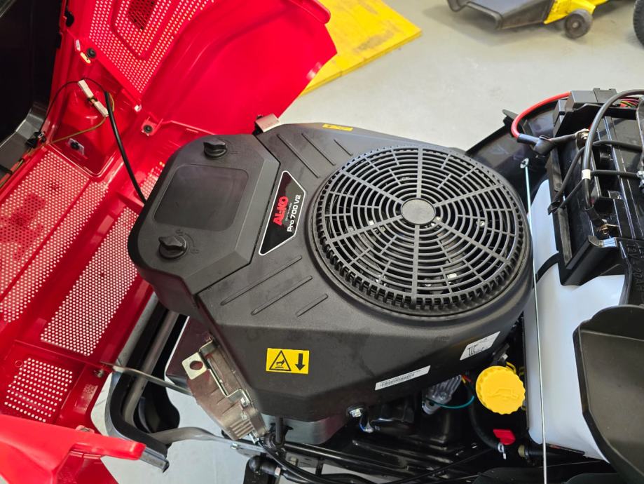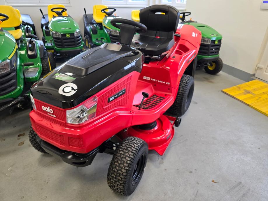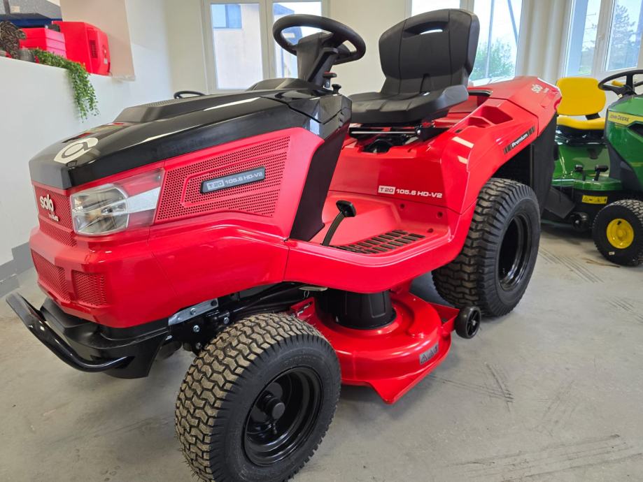 Prodaje se nova traktor kosilica Solo by AL-KO T22 - 105.1 Premium HD-A V2: 22 KS, dva cilindra, V2 AL-KO motor s uljnom pumpom, hidrostatski pogon, košara za skupljanje trave i malčiranje, kosište s dva noža, širina otkosa 105 cm