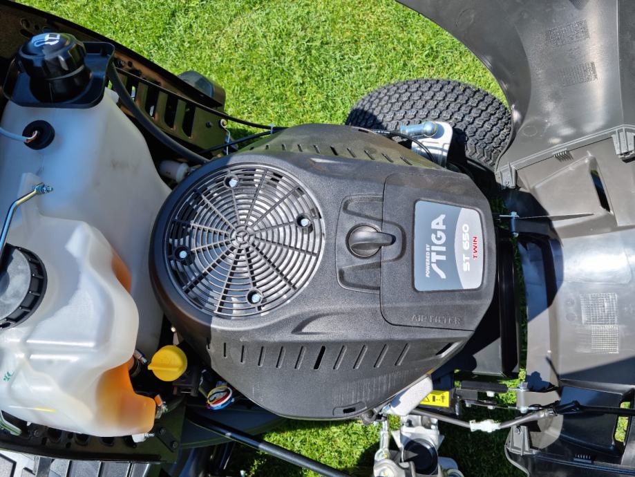 Prodaje se nova traktor kosilica Castelgarden XHT 240 4WD: 24 KS, Stiga motor, dva cilindra, uljna pumpa, hidrostatski pogon, pogon na sva četiri kotača, košara za skupljanje trave, kosište s dva noža, širina otkosa 105 cm.
