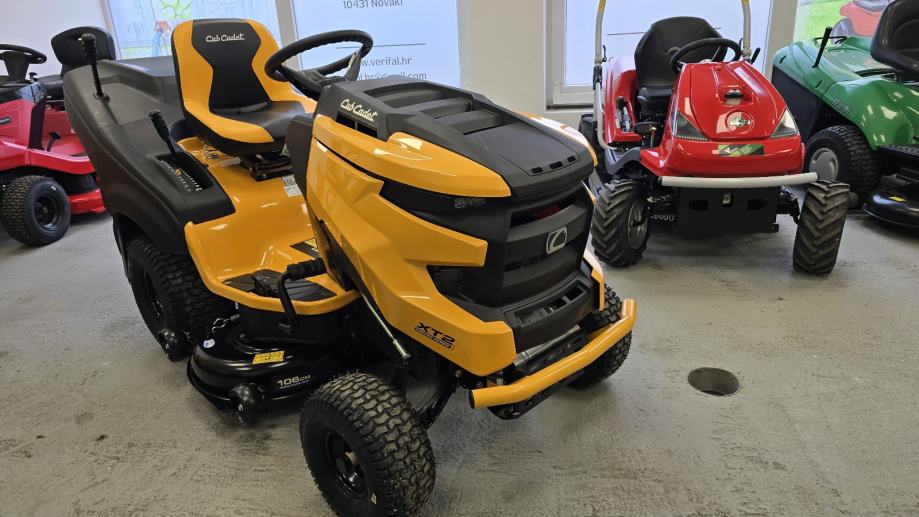 Prodaje se nova traktor kosilica Cub Cadet XT2 Enduro series - najnoviji model 2024. godina proizvodnje, Kawasaki motor, dva cilindra, uljna pumpa, hidrostatski pogon, kosište s dva noža, širina otkosa 106 cm, košara za skupljanje trave.