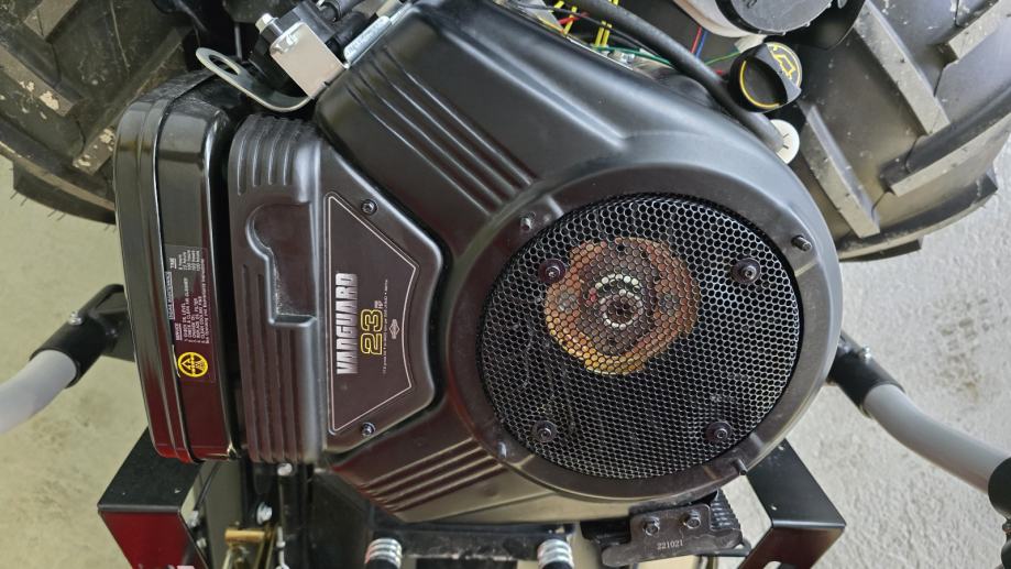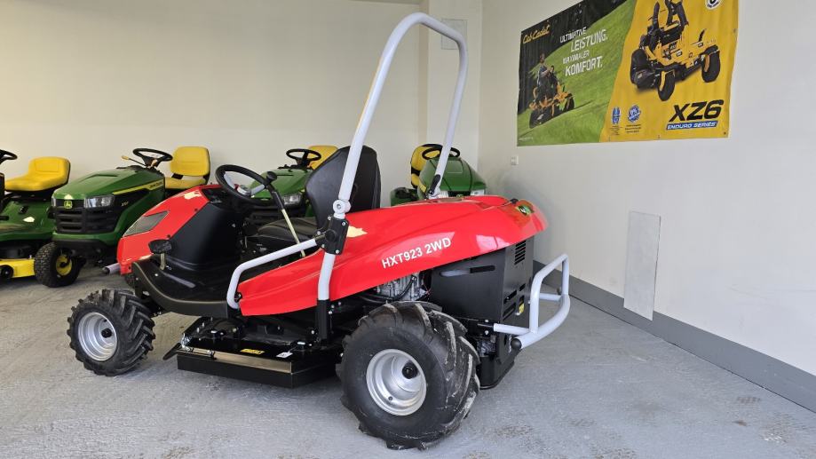 Prodaje se nova traktor kosilica HERKULES HXT 923 2WD: 23 KS, 2 cilindra, Briggs Wanruard industrijski motor s uljnom pumpom, hidrostatski pogon sa šperom, kosište s dva noža, širina otkosa 95 cm, stroj namijenjen za košnju visoke trave, brdovite i zahtjevne terene.