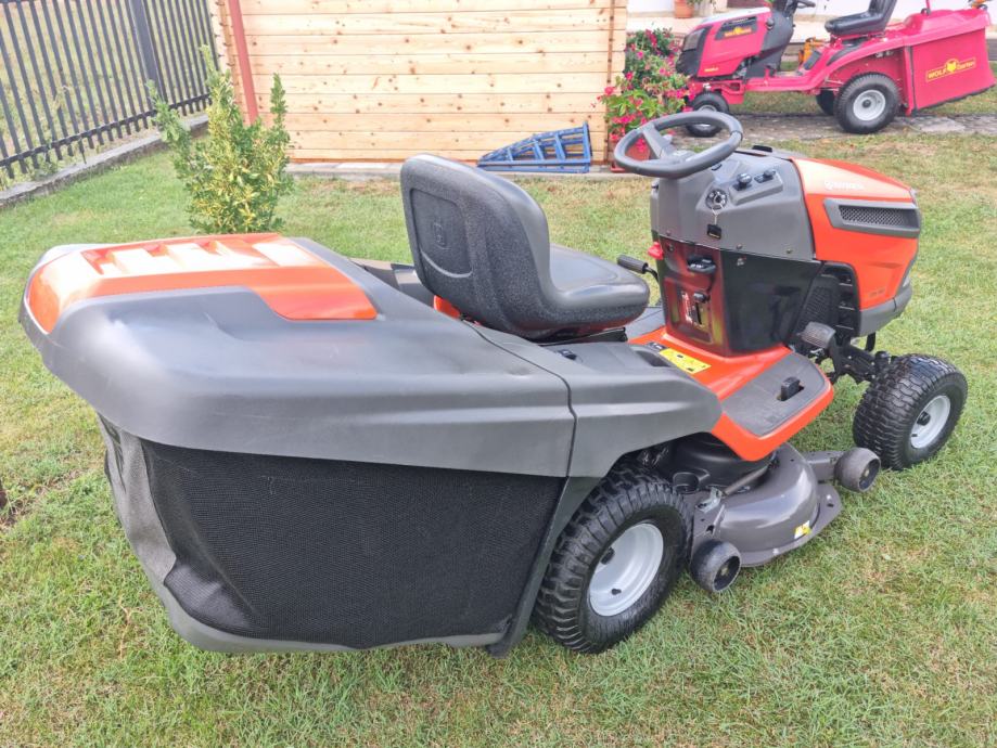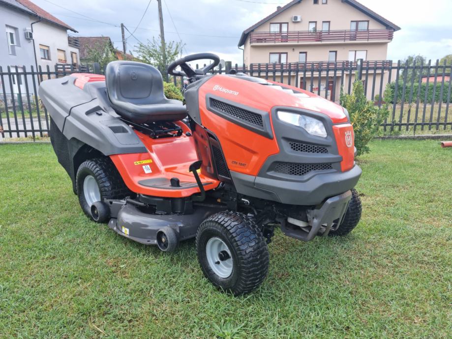 Prodaje se traktor kosilica Husqvarna CTH 184: dva cilindra, Kawasaki motor, 18 KS, uljna pumpa, hidrostatski pogon, kosište s dva noža, širina otkosa 107 cm, košara za skupljanje trave, elektro otvaranje košare, malčiranje i košnja bez košare.