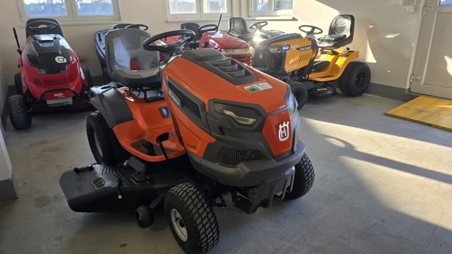 Prodaje se traktor kosilica HusqvarnaTS 146TXD,22 KS, 2 cilindra, B&S motor, uljna pumpa, hidrostatski pogon, kosište s dva noža, širina otkosa 117 cm, bočno bacanje i malčiranje trave.u kompletu dolazi set noževa za malčiranje i set za bočno bacanje