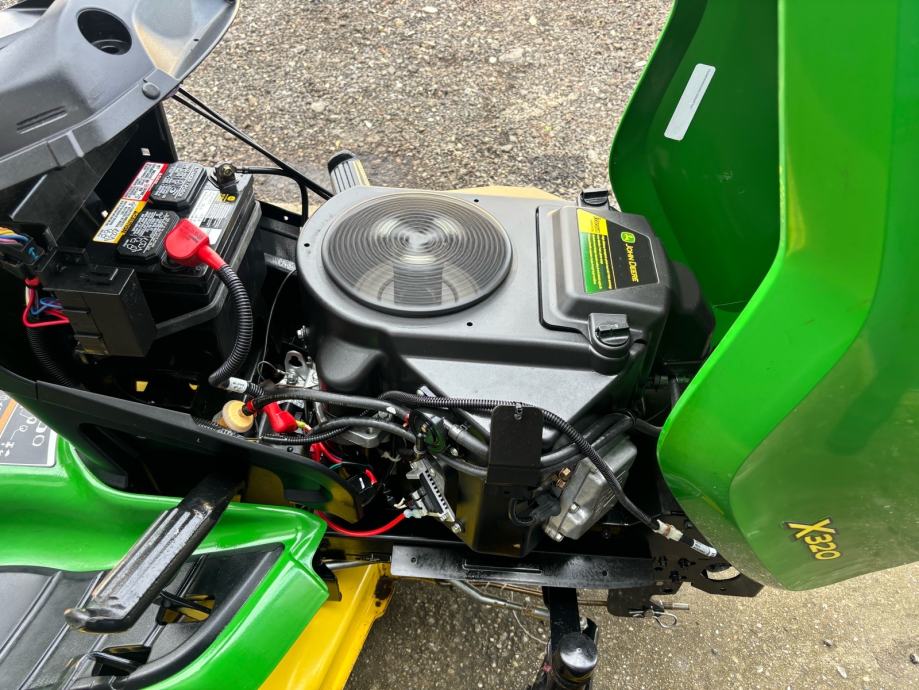 Prodaje se profi traktor kosilica John Deere X320, motor Kawasaki 22 ks 2 cilindra s uljnom pumpom, hidro getriba, kosa sa 3 noža zahvata 122 cm, elektricno paljenje kose, tempomat.