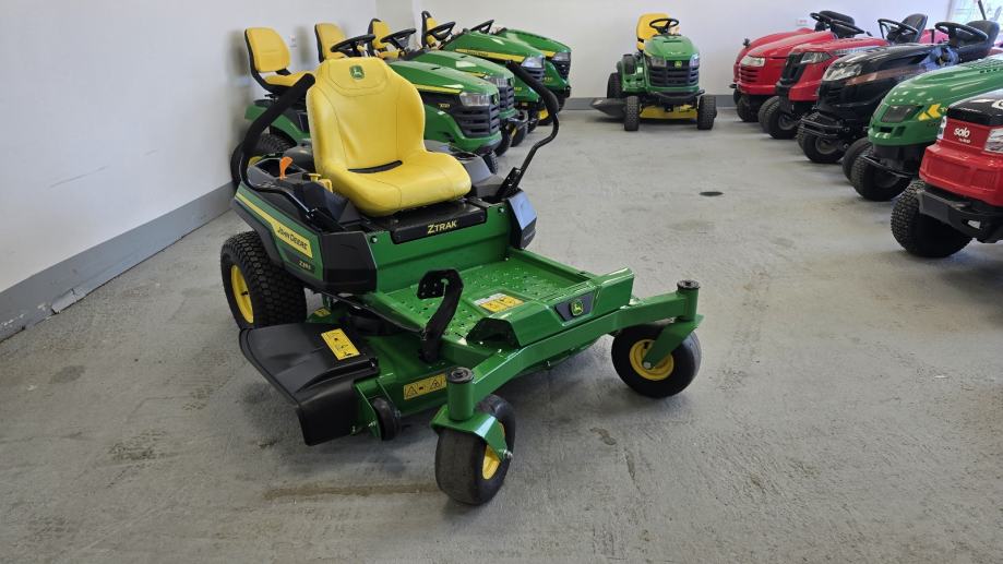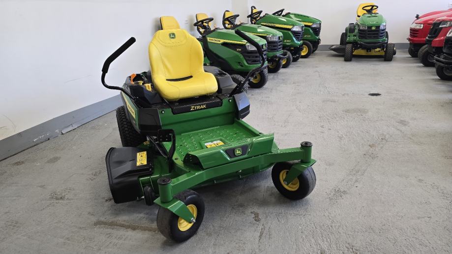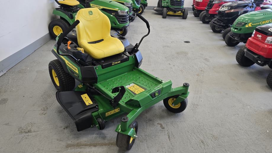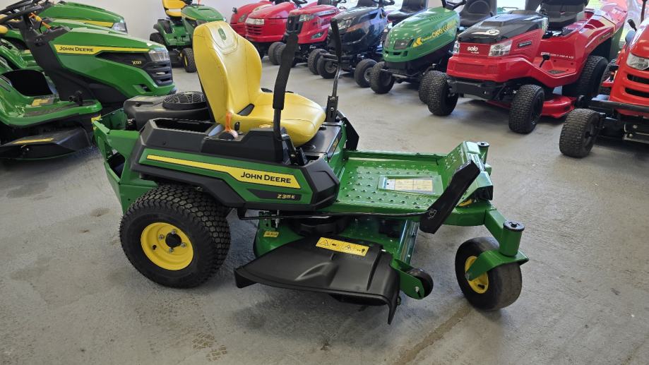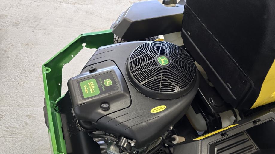 Prodaje se traktor kosilica John Deere Z 315E: 20 KS, 656 cc, 2 cilindra,B&S motor, uljna pumpa, hidrostatski pogon, kosište s dva noža, širina otkosa 107 cm, bočno bacanje Kosilica s okretom na mjestu pogodna za brzu košnju ivelike površine