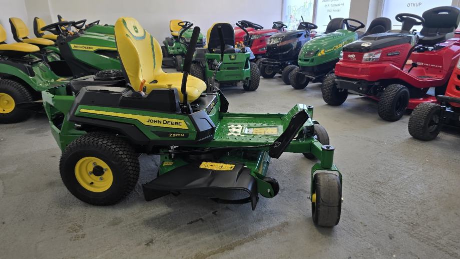 Prodaje se traktor kosilica John Deere Z 320 M: 21,5 KS, 726 cc, 2 cilindra,kawasaki motor, uljna pumpa, hidrostatski pogon, kosište s dva noža, širina otkosa 107 cm, bočno bacanje Kosilica s okretom na mjestu pogodna za brzu košnju ivelike površine