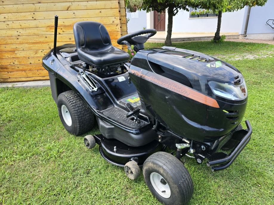 Prodaje se traktor kosilica MTD (Black edition) 282/105: 24 KS, dva cilindra,Kawasaki motor, uljna pumpa, hidrostatski pogon, kosište s dva noža, širina otkosa 105 cm,Novi noževi novo rezno kučište novi remeni svi španeri rolice i remenice nove napogonu i kosištu.