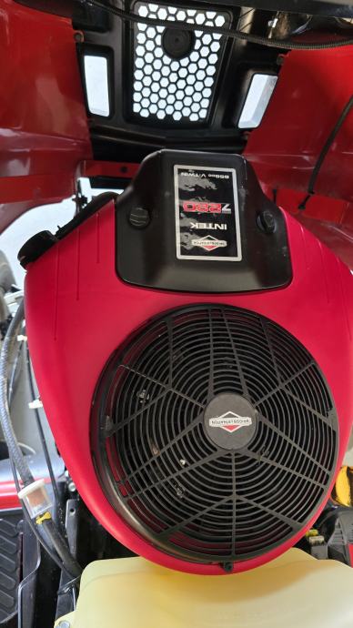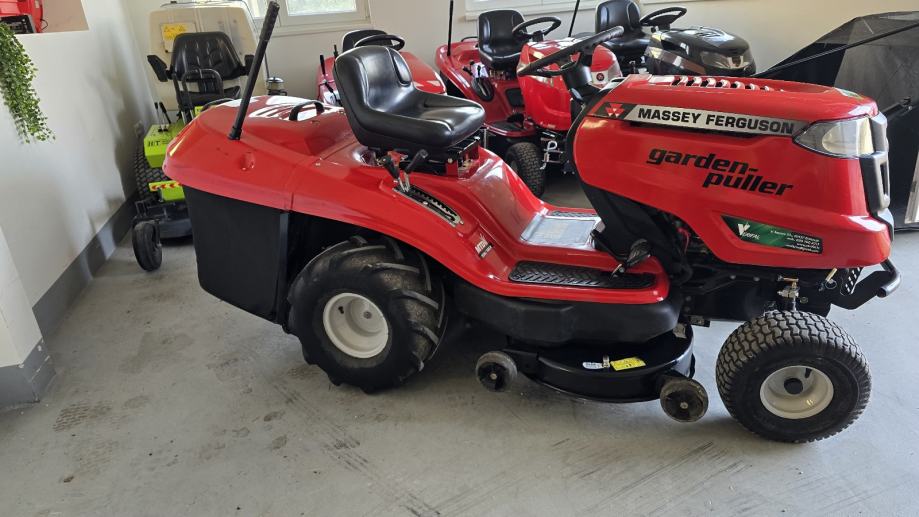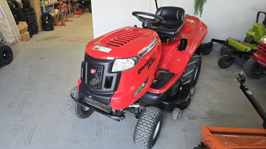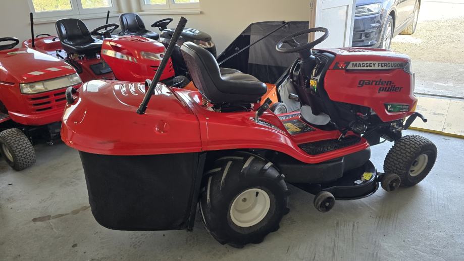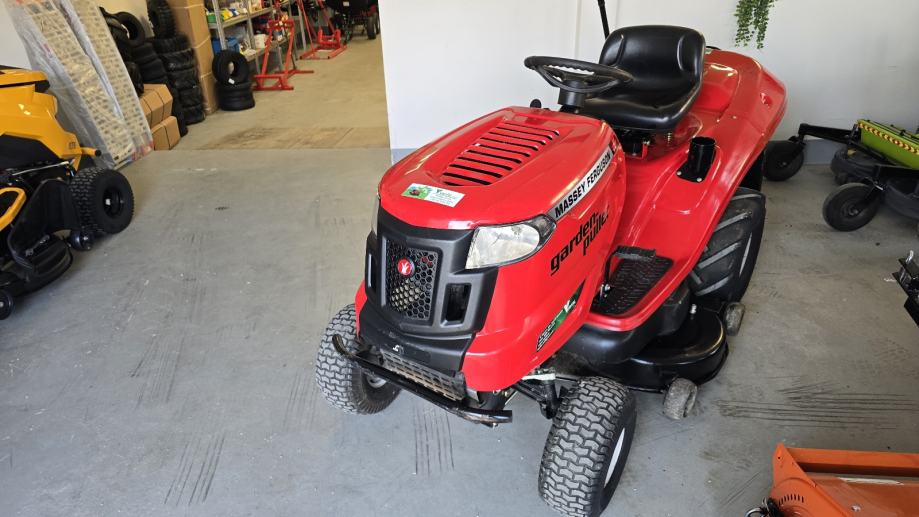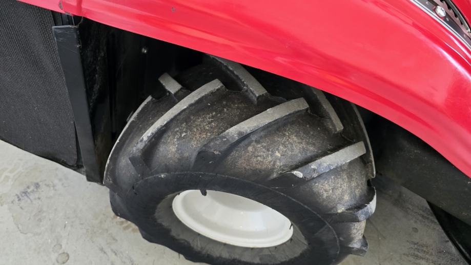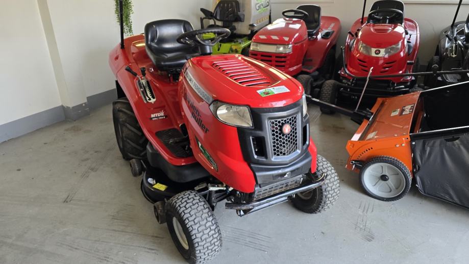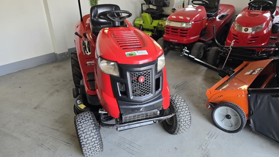 Prodaje se traktor kosilica MTD (Massey Ferguson) 220/105: 22 KS, dva cilindra, Briggs motor, uljna pumpa, hidrostatski pogon, kosište s dva noža, širina otkosa 105 cm, košara za skupljanje trave. Traktorski profil guma.