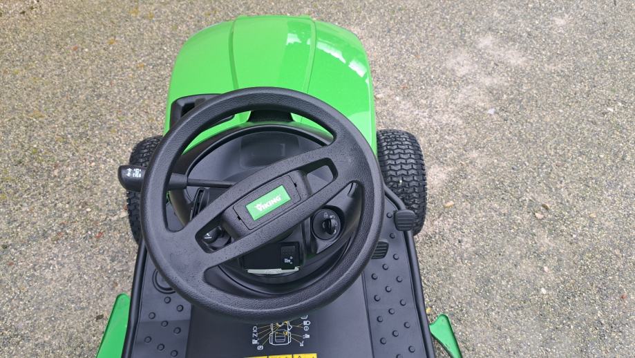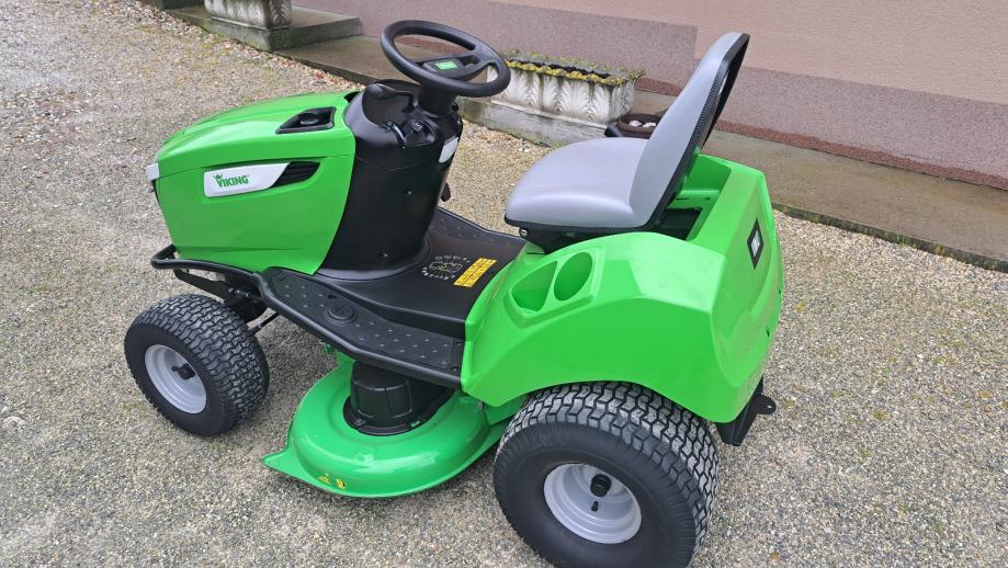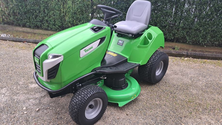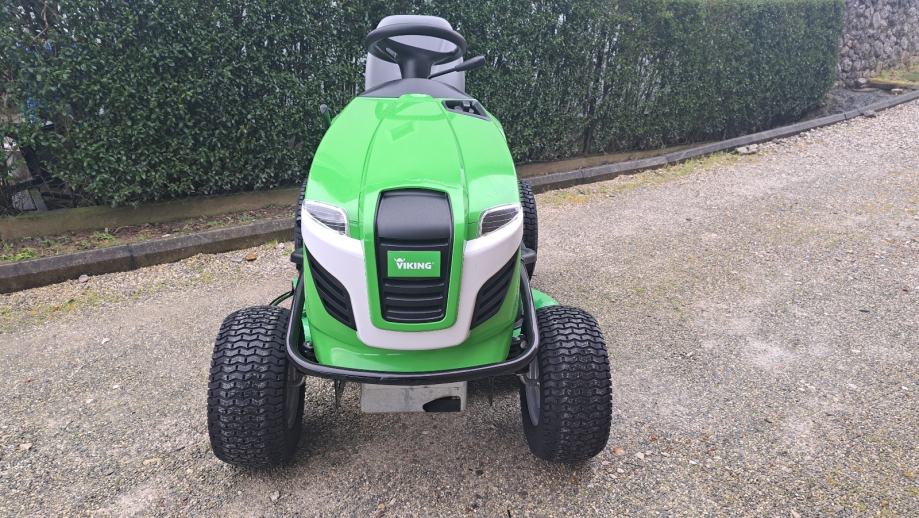 Viking T4 MT4112 SZ traktor sa bočnim izbacivanjem trave, 2 noža,otkos 112 cm. Motor 2 cilindra briggs stratton 16 KS sa uljnom pumpom. Orginal stanje ,kosište nije vareno ni farbano. Nema nikakvih dodatnih ulaganja.