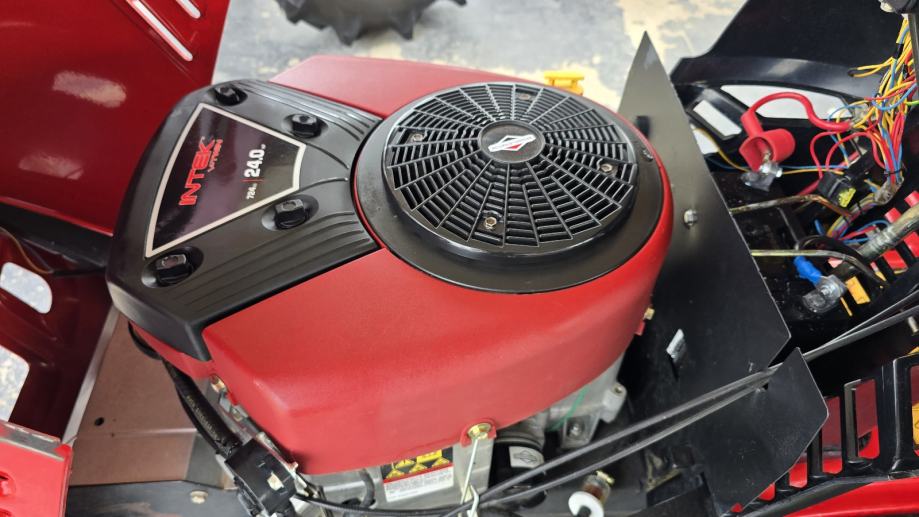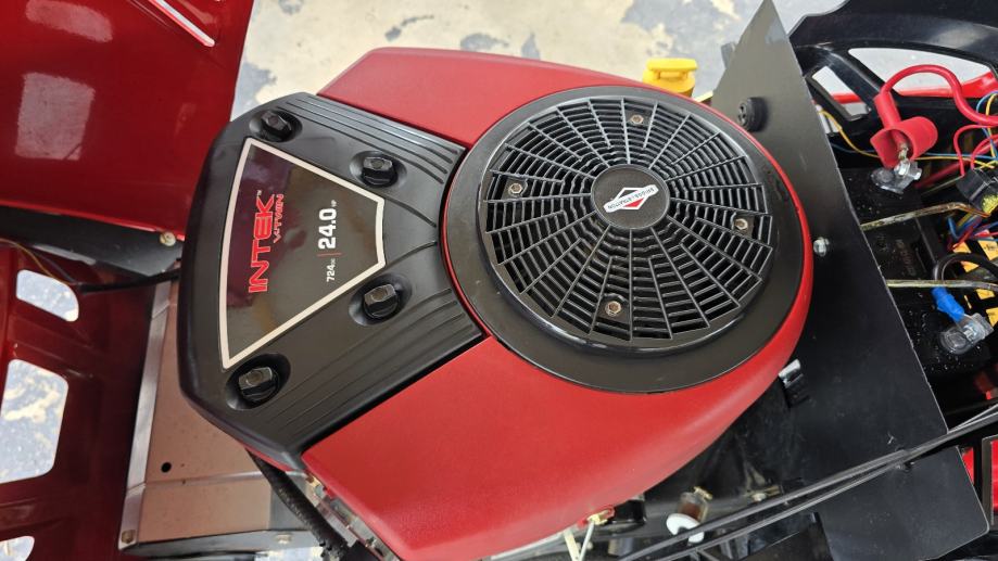 Prodaje se traktor kosilica SNAPPER: 24 KS, 2 cilindra, B&S motor, uljna pumpa, hidrostatski pogon, kosište s 2 noža, širina otkosa 105 cm, košara za skupljanje trave,