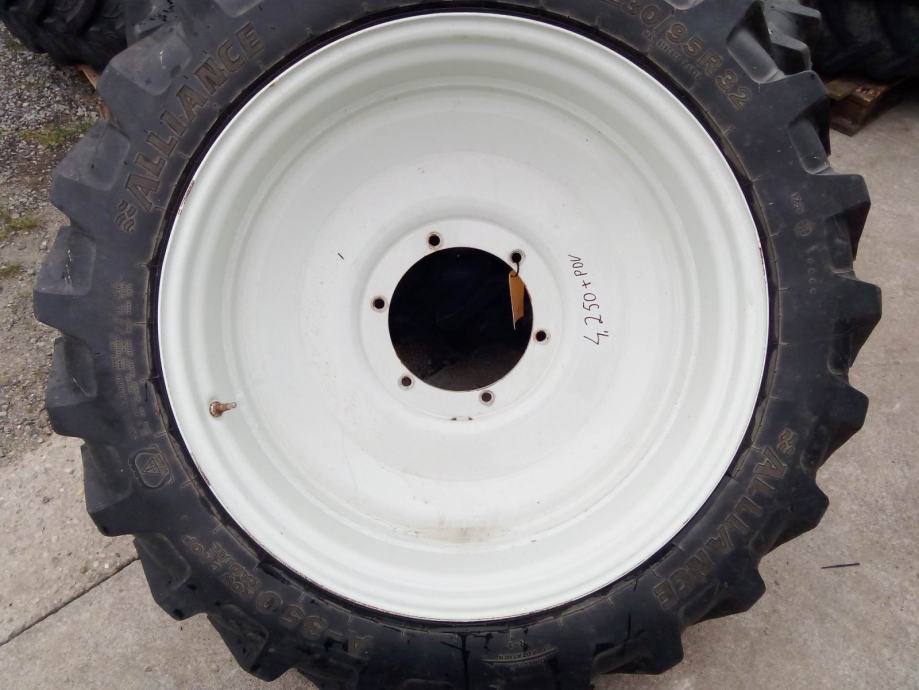 prednji: 250/85r28 (9,5-28) , promjer srca felge 25 cm , udaljenost od sredine do sredine vijka 14,5 cm