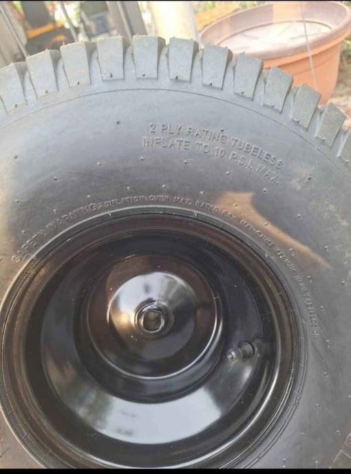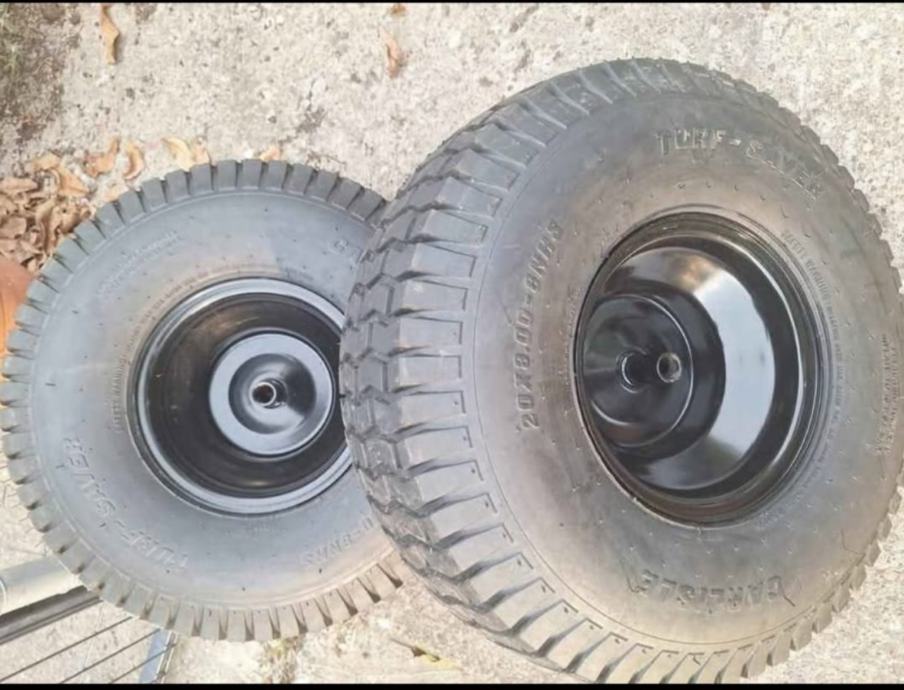 Novo koristilo se doslovno 2h,ne pašu mi pošto kosim brdo i kupljene su gume s traktorskim ripnama(profilom) ove su mi višak