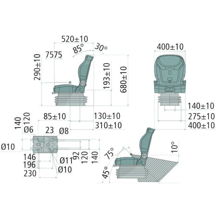 Komforno zračno sjedalo za voćarske i vinogradarske traktore uskih kab