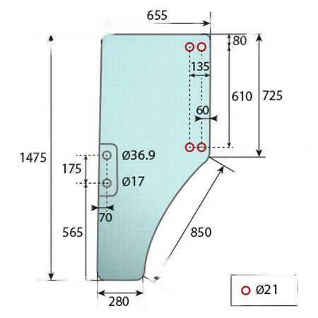 Staklo vrata lijevo, tonirano, John Deere ER047314