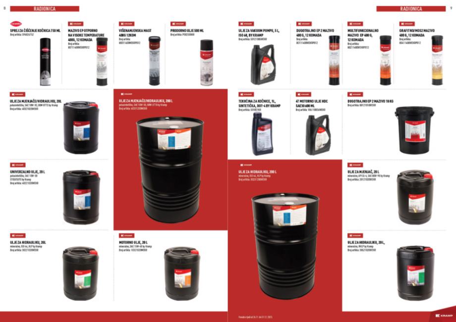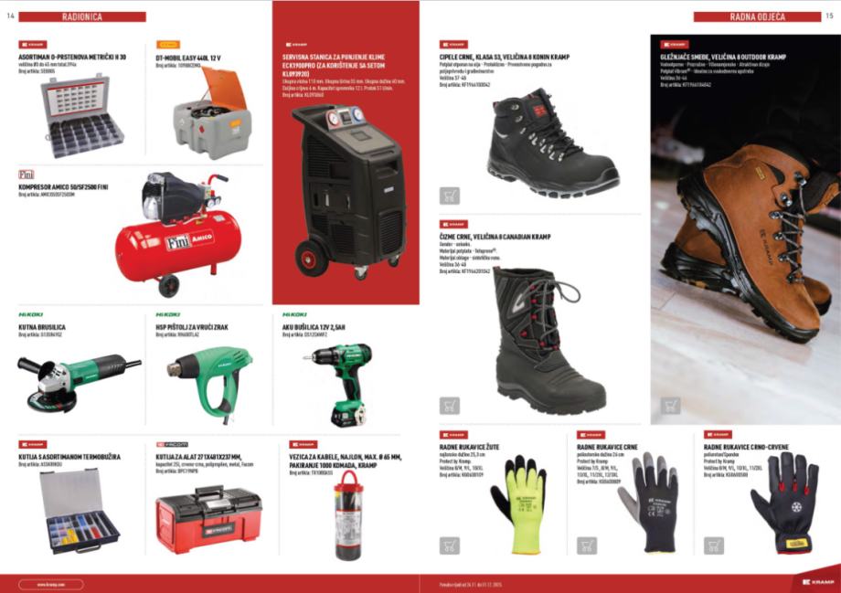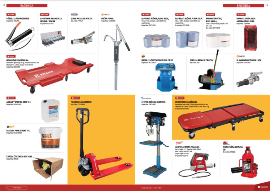 Odjeća, obuća, alat, ulja, radna svjetla, ...