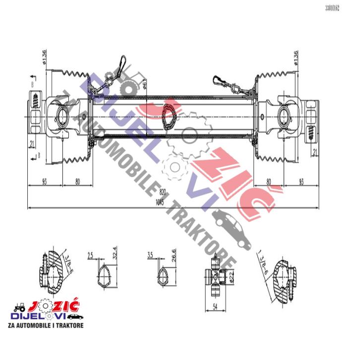 KARDAN KRIŽ 22X54 DUŽINA 820MM PREMIUM PARTS