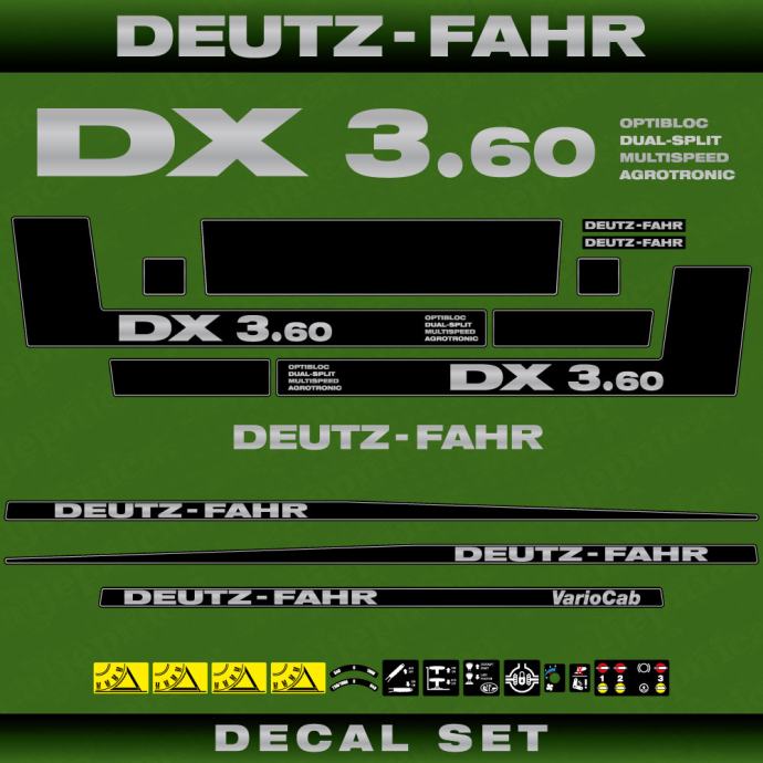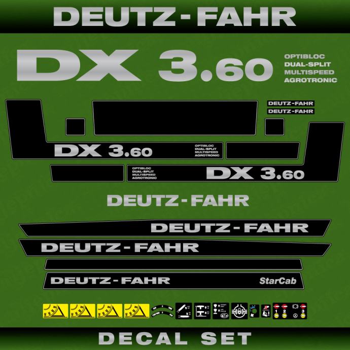 Zamjenske naljepnice za traktor Deutz-Fahr DX 3.60 Optibloc Dual-Split Multispeed Agrotronic StarCab ili VarioCab