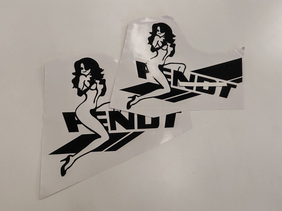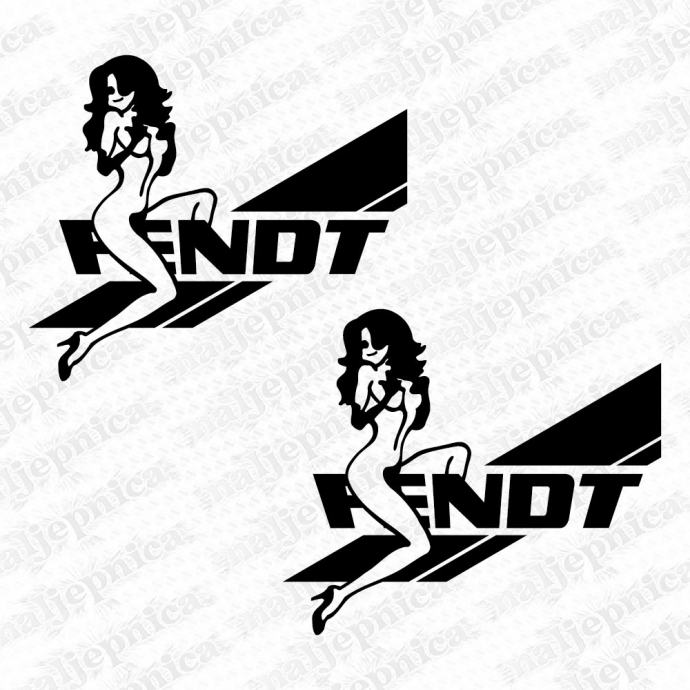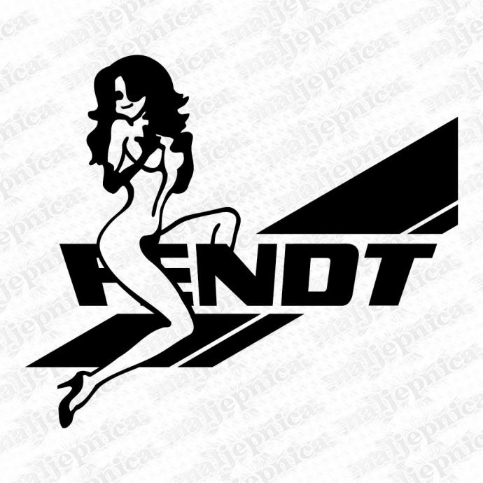 Zamjenske naljepnice za traktor Fendt (Fendt--7; djevojka+natpis - crno/rezano)