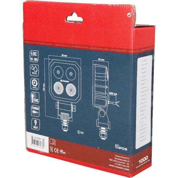 Radna lampa LED, 90x39x133 mm, 9W, 10/30V, 1000 Lm, 4 LED dioda, Kramp, set 2 komada