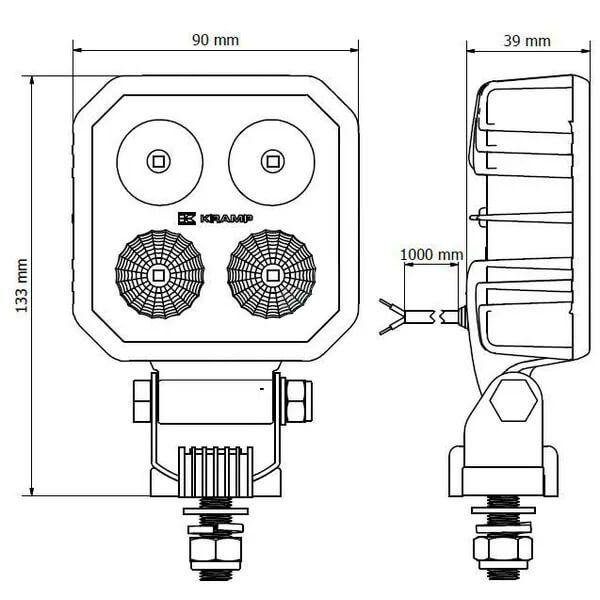 Radna lampa LED, 90x39x133 mm, 9W, 10/30V, 1000 Lm, 4 LED dioda, Kramp