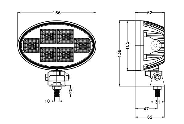 Visokokvalitetna ovalna radna lampa koja ne uzrokuje smetnje radijskim valovima zahvaljujući redukciji šumova CISPR 25 Klase 4. Otporna je na pranje pod visokim pritiskom, s temperaturom svjetla 5700K. Pripada seriji Black koja ima 3-godišnje jamstvo proizvođača.