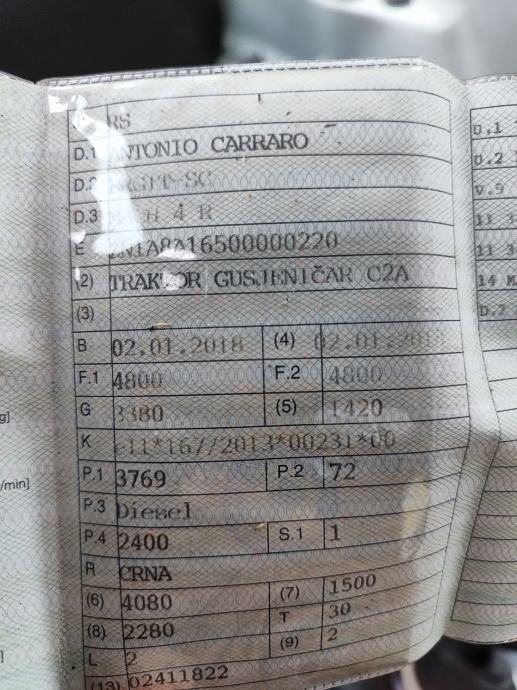 Prodajem traktor Antonio Carraro Mach 4, 100KS, mjenjač 16/16 mehanički sa reverserom, 5000 radnih sati, klimatizirana kabina. Set 4 gusjenice i 4 kotača. Gume na 90%, gusjenice na 60%, jedna puknuta. Redovno održavan, sve ispravno, prvi vlasnik. U sustavu PDV-a, cijena sa pdv-om