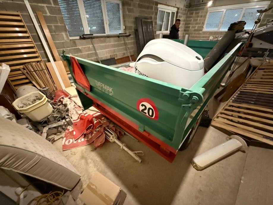 Traktor, muličar i prikolica nikad korišteno! Garanžirano. Traktor ima klimu. Cijena 53.500€