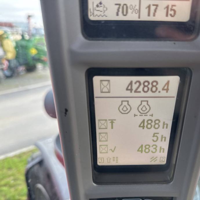Opis: Klima uređaj, zračno ovjesno sjedalo, kontinuirano varijabilni mjenjač (CVT), brzina za vožnju unatrag s lijeve strane, puzajući stupanj prijenosa, ovjes kabine, motor od 150 KS, AdBlue, prednje priključno vratilo, prednja brza spojka, 1 prednji upravljački ventil, suspendirana prednja osovina, 3 stražnja upravljačka ventila, senzor opterećenja, ISOBUS, vanjske kontrole za trotočkovnu montažu, priključno vratilo 540/1000 o/min, trotočkovna montaža s brzom spojkom, kuka za prikolicu, hidraulična pumpa od 160 l/min