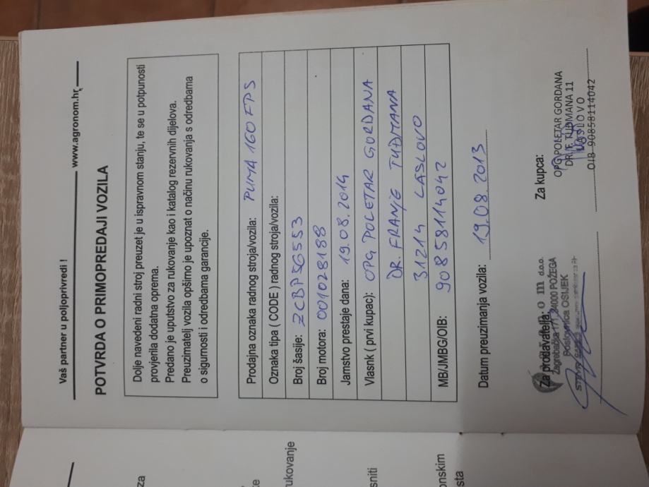 Prodajemo traktor, Case Puma 160, prvi vlasnik, u odličnom stanju, redovito održavan. Molimo nazvati na: 098 9491 345 - Tibor