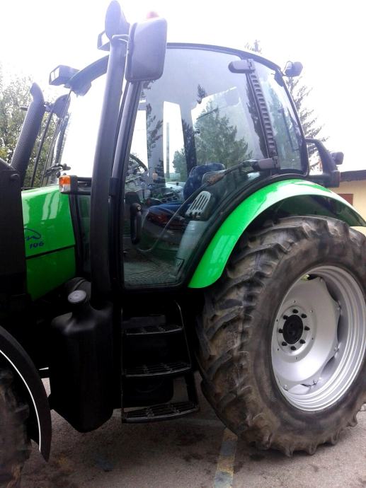 TRAKTOR DEUTZ AGROTRON 106 U besprijekornom stanju. Proizveden 1997. Uvezen iz Njemačke 2009. Registriran do 05.2015. Ima KLIMU. Samo 7100 radnih sati. Ovaj traktor ima mogučnost kompjuterskog pojačanja snage na 120KS po potrebi. Ima originalan profesionalan utovarivač... Na slici 8 priložena je saobračajna sa svim podacima.