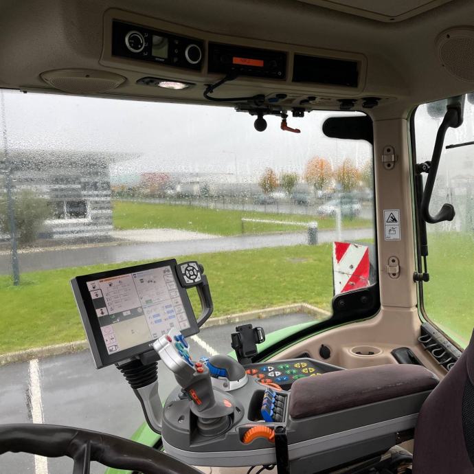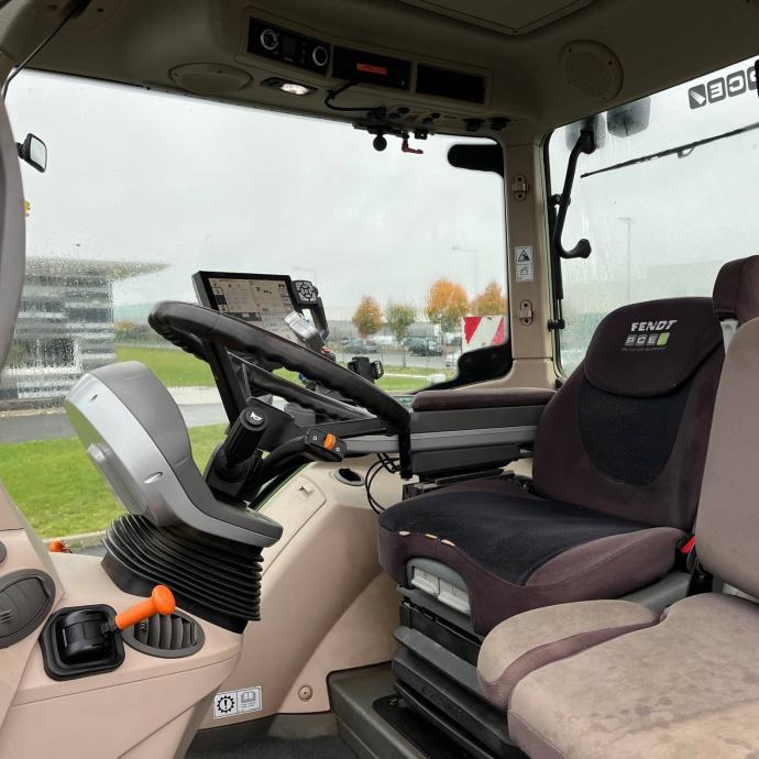 Opis: Klima uređaj, zračno ovjesno sjedalo, CVT mjenjač, brzina za vožnju unatrag s lijeve strane, puzajući stupanj prijenosa, ovjes kabine, Fendt VarioGuide zaslon, Trimble AG-482 antena/prijemnik, Autosteer, EGNOS submetrička aktivacija, motor od 180 KS, potreban AdBlue, prednja trotočkovna brza spojka, 1 prednji upravljački ventil, suspendirana prednja osovina, teška hidraulika, 4 stražnja upravljačka ventila, senzor opterećenja, ISOBUS, zračni kočni sustav, vanjske trotočkovne komande, PTO 540/1000 o/min, trotočkovna veza s brzom spojkom, hidraulična gornja spona, Kuka za prikolicu, klipna spojka, vučna kugla, mjenjač 50 km/h