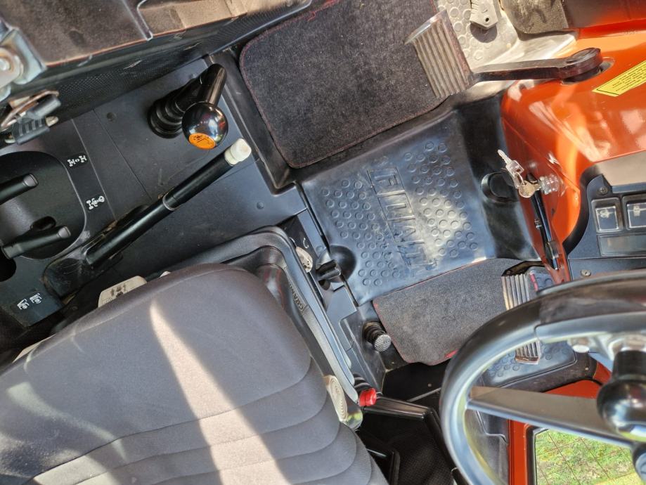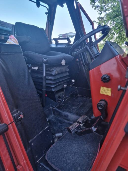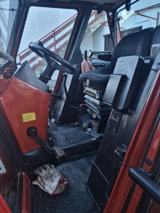 Traktor je sav mehanički, prednji pogon se uključuje mehanički, kardan se uključuje mehanički, mehanički reverzer(naprijed-natrag), brza getriba(40 km/h), 3 grupe po 4 brzine + HI-LO(polovinke brzina-mehanički)