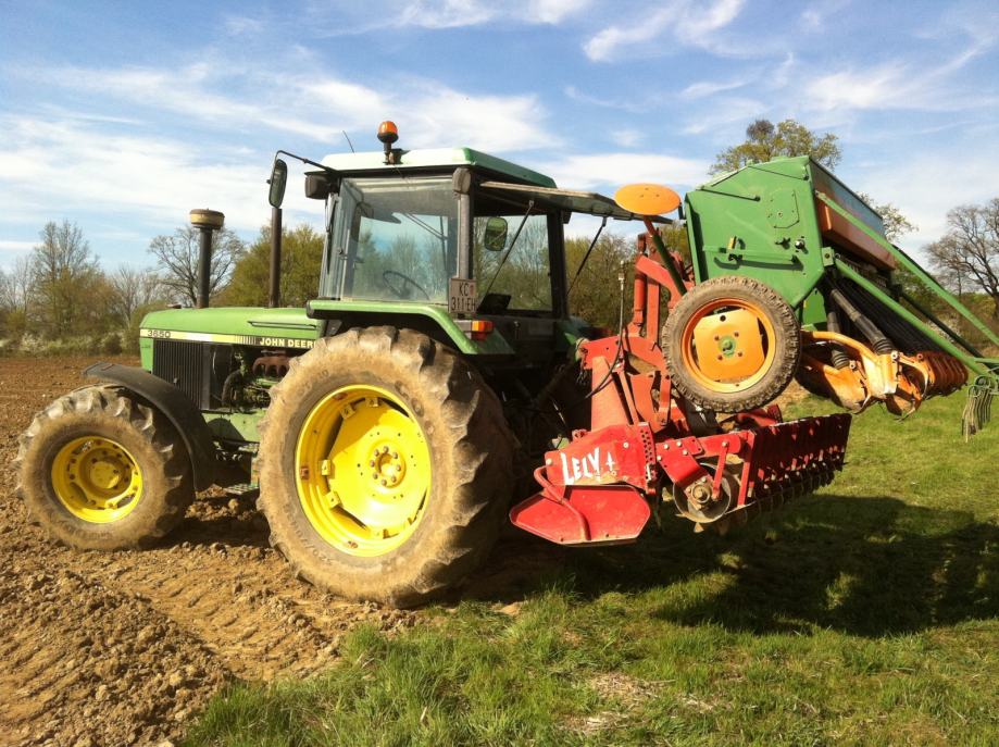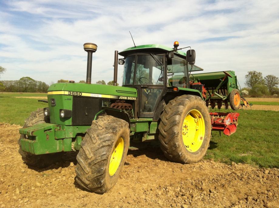 Traktor John Deere 3650, 8700 rs, '89. godina, registriran do 04/2015. Potpuno ispravan, ušćuvan. Ugrađena nova turbina, zamijenjeno ulje, filteri, akumulatori, gumena spojnica sa kučištem na uljnoj pumpi. Stražnje gume Kleber-radial 480/70/R38 50% ripne, prednje Michelin-radial 16,9 R 24, 60 % ripne. Nije prebojan. Hitno prodajem ili mijenjam za kombajn. Cijena nije fiksna.