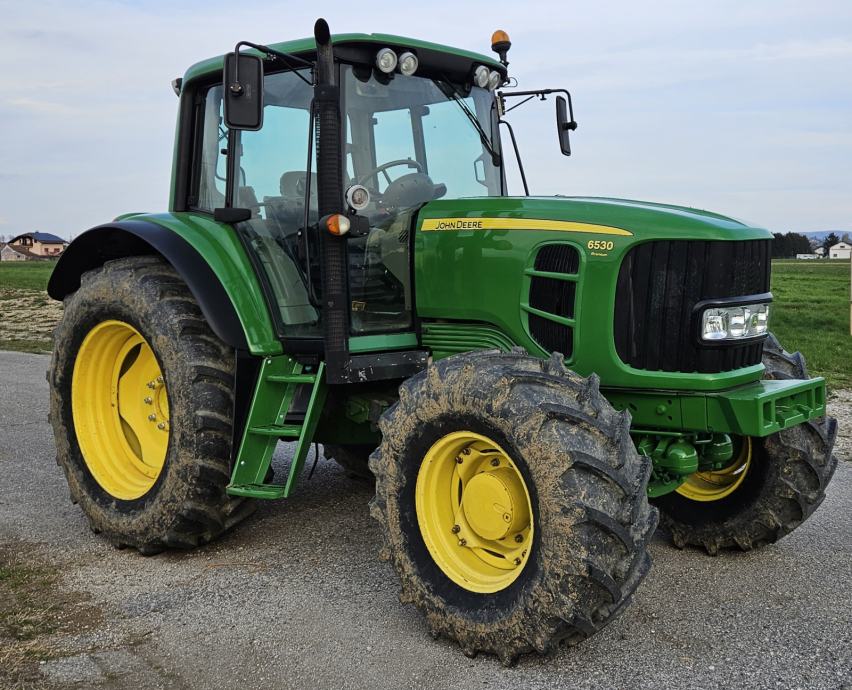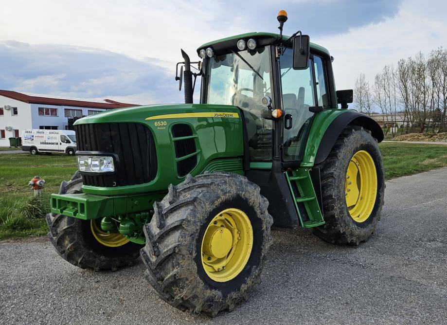 John Deere 6530 Premium s Autopower automatskim mjenjačem, TLS ovjesom prednje osovine, hidrauličko opruženom kabinom, elektro hidrauličnim ventilima, klima uređajem, Grammer zračnim sjedalom, Joystickom, menijem na hrvatskom jeziku, hladnjakom, hidrauličnim kočnicama prikolice, HMS.
