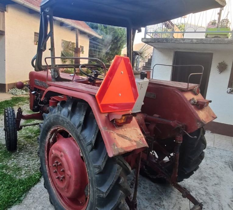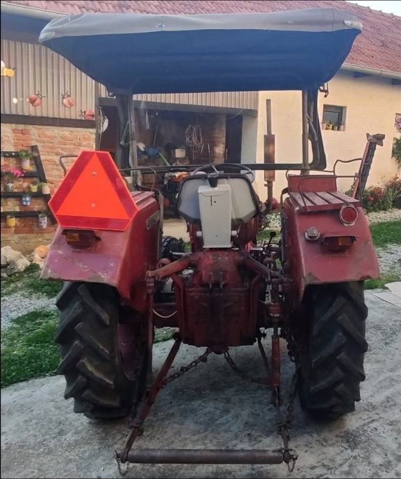 Traktor je u voznom stanju sa bočnom kosom i polu-kabinom.