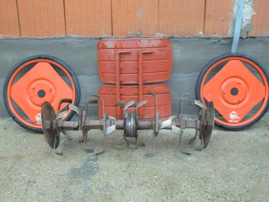 Prodajem ili mijenjam navedeni motokultivator u vrlo dobrom stanju sa svim mogućim priključcima.Ima 3 brzine naprijed (brzi hod) ,3 brzine u nazad (spori hod). Od priključaka ima ; ralicu 100/45(pomičnu lijevo, desno,ravno),frezu podesivu po širini od 35cm do 100cm , zaštitu za frezu, kotači za tansport montirane freze, kanđe koje služe kod oranja i ralićenja ( 2 kompleta), jednobrazni plug, pluga za vađenje krumpira i sl.,plug razgrtač, protuuteg za lakše oranje/frezanje, kotači koji se trenutno nalaze na motokultivatoru sa pripadajućim utezima i prikolica sa kočnicom nosivosti 750 kg. Mijenjam ga za manji voćarski traktor i sl. ( 4x4) uz moguću nadoplatu.Cijena za keš je 10000 kn, a u zamjeni 11000kn. PRODAJE SE SAMO U KOMPLETU !!!!! (Kosa sa malim kotačima prodana)
