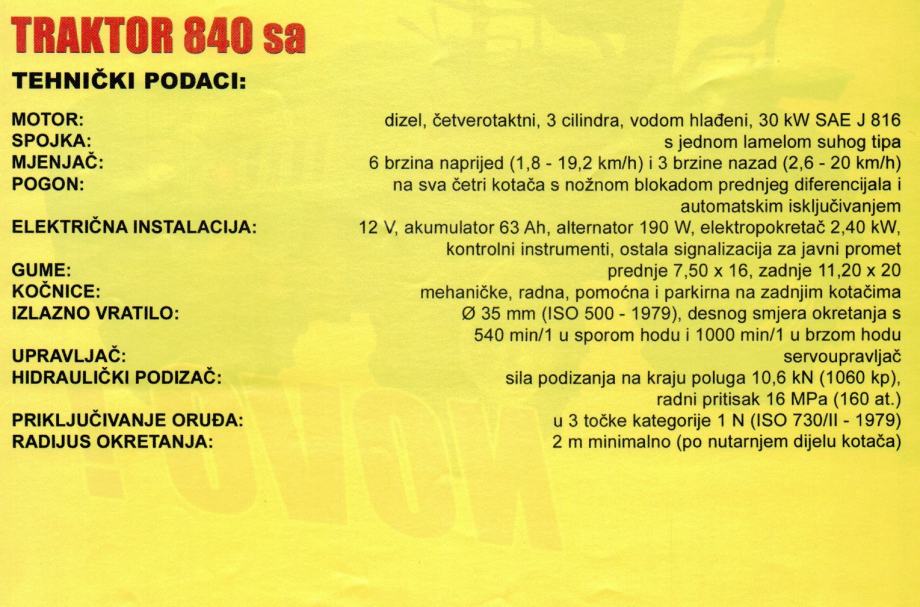 Gume : prednje : 7,5 x 16, zadnje 11,2 x 20