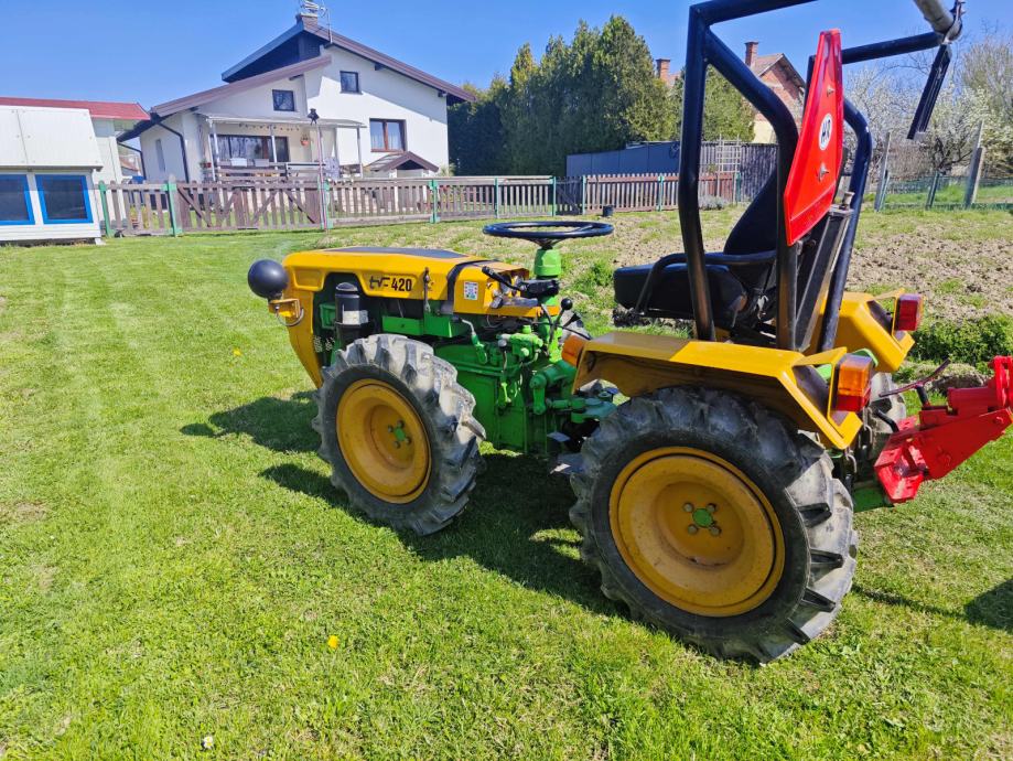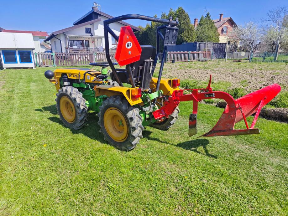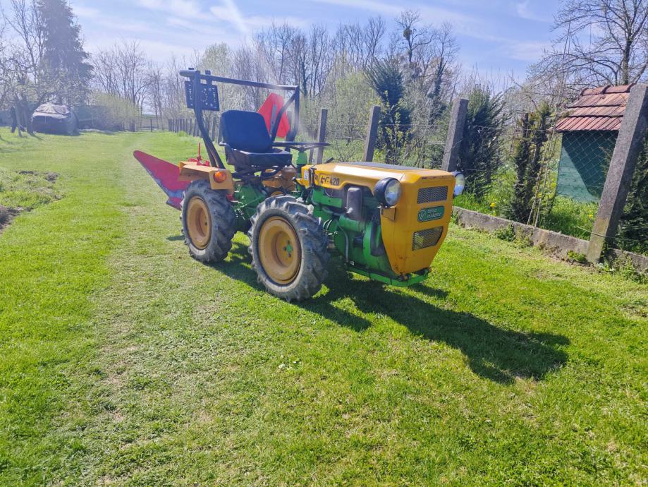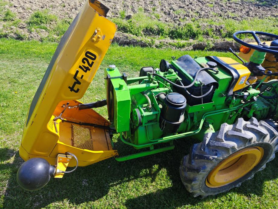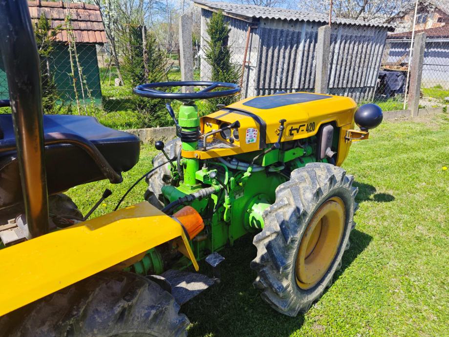 Tomo Vinković, TV 420, 1988. g., sa papirima, uredno odjavljen., jako očuvan i garažiran, malo radio cca. 200 radnih sati. Kopčanje u tri točke + inverzija s dva izlaza kardana, nova signalizacija i akumulator. Uz traktor jednobrazni plug, freza i prikolica.
