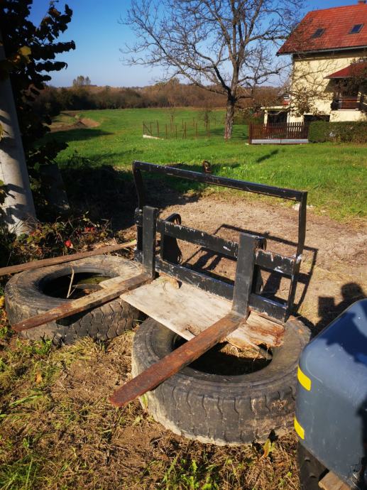 Traktor posjeduje original utorivač sa širokom korpom 200cm i vilicama za palete.