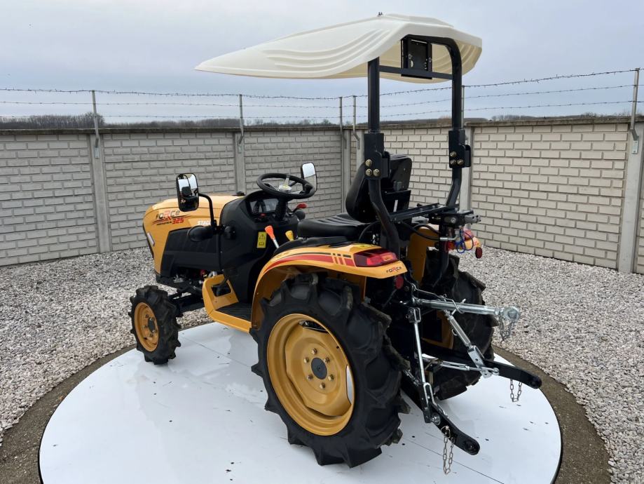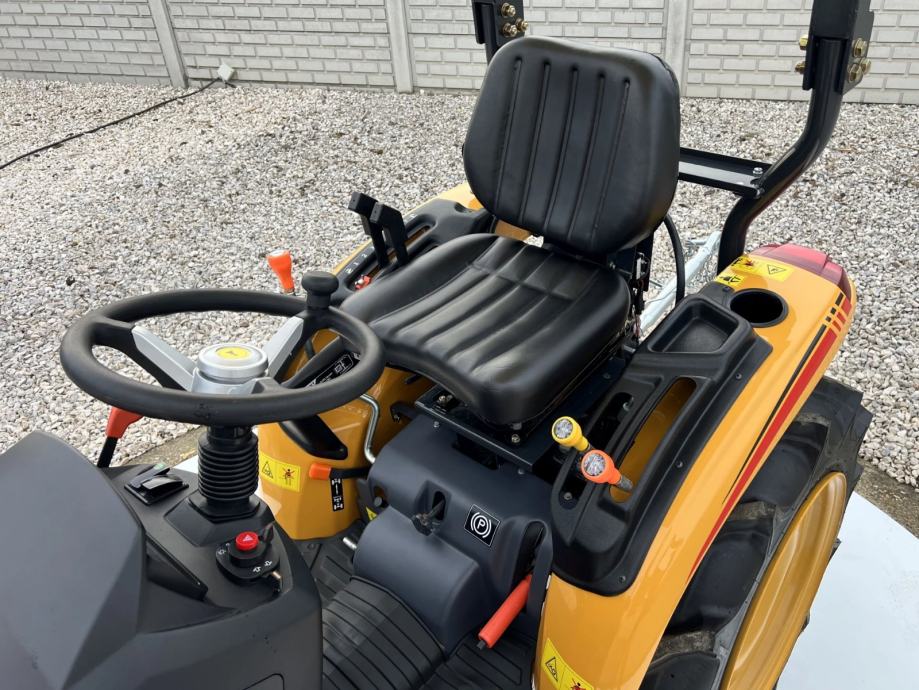Novi traktor, garancija 12 mjeseci. Ima 25 konjskih snaga i širok je samo 103 cm. Servo. S dva dodatna hidraulička kruga. Potpuno opremljen: kuka za vuču, roll bar, zaštitni krov, udaljeni hidraulički krugovi, stražnji PTO s 540 i 980 o/min, prekidač za isključivanje struje koji se može uključiti s instrument ploče. CAT1 ovjes alata u tri točke ima kapacitet podizanja od 600 kg. Kapacitet hidrauličke pumpe je 26,3 litara / minuti.
