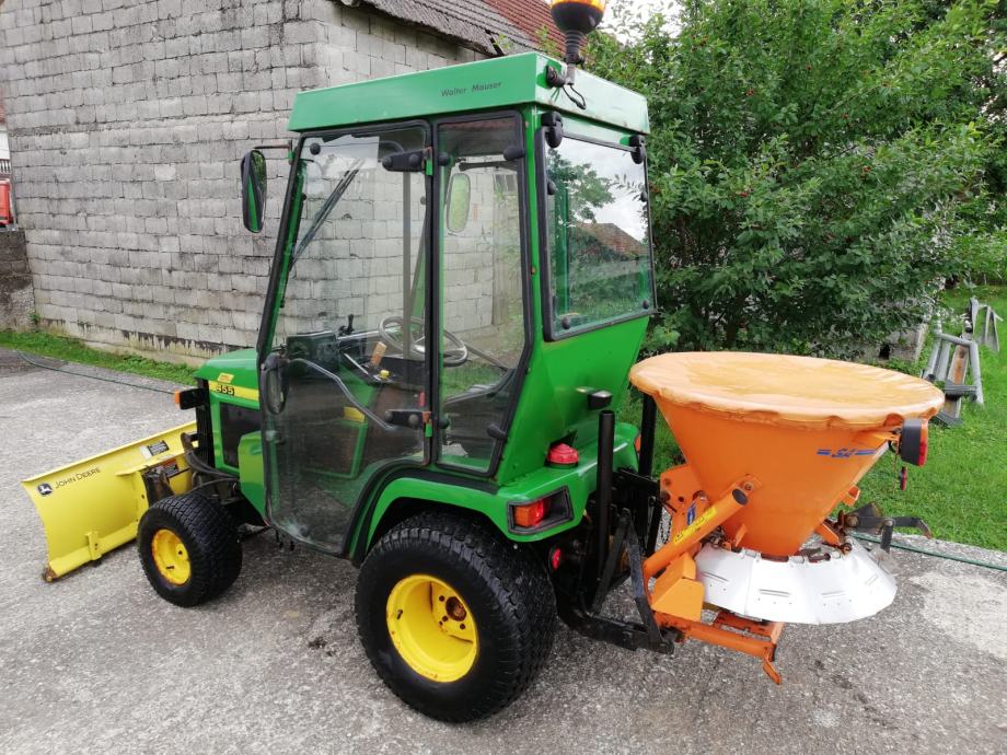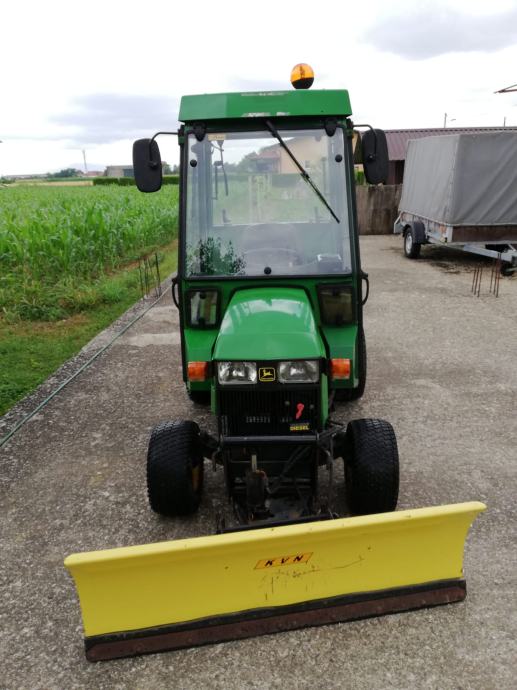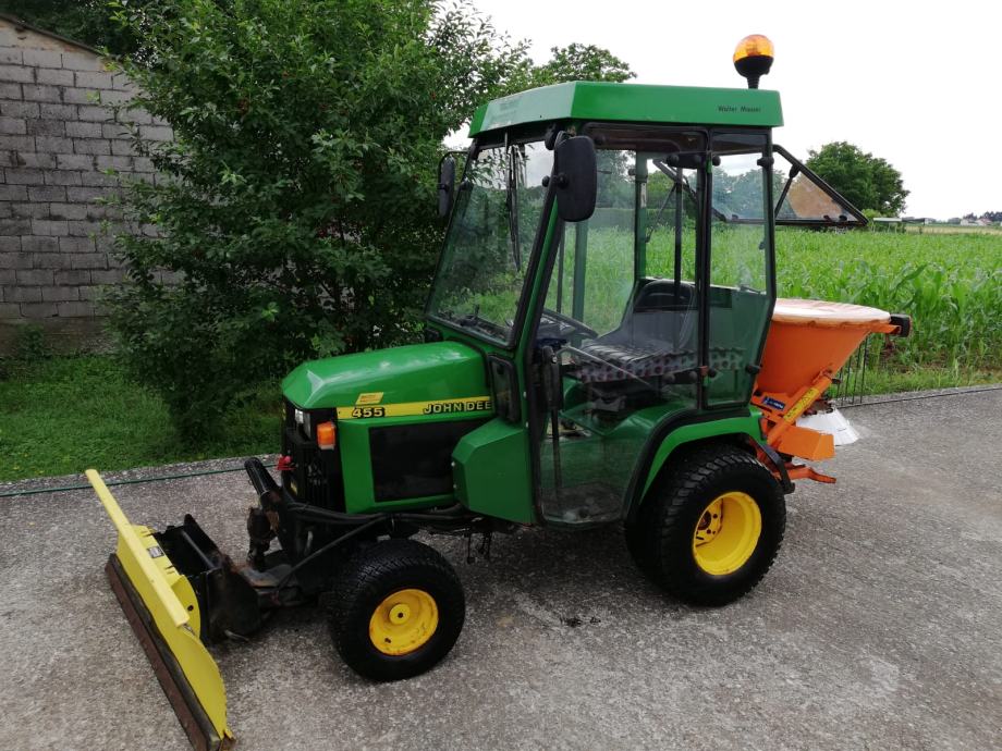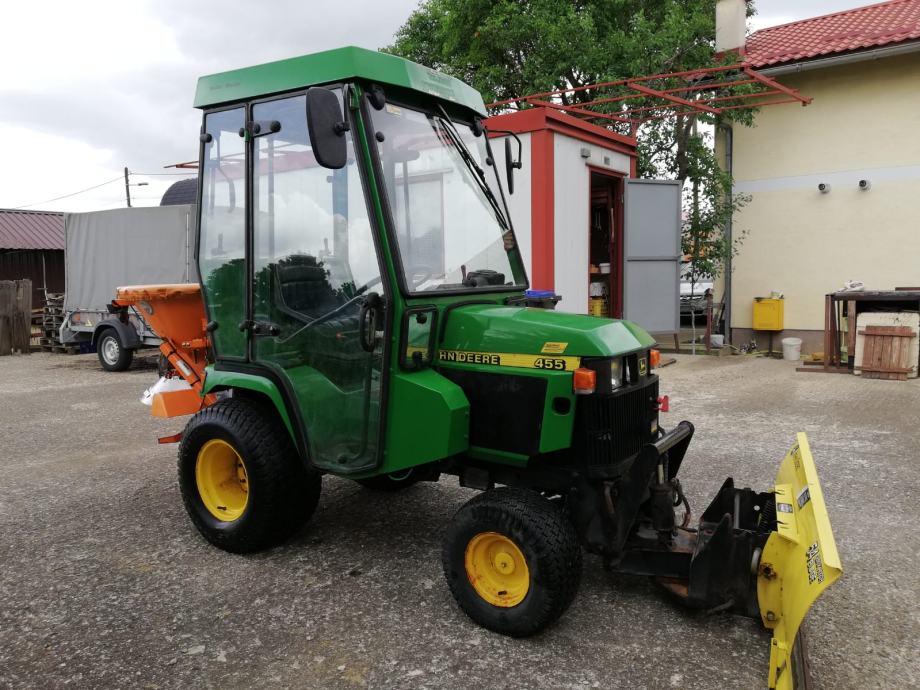 Prodajem traktor John Deere 455, dizel, 20 KS, vodeno hlađenje, zadnji pogon, hidrostatski mjenjač. Traktor ima hidraulični volan, grijanu kabinu i opremljen je prednjom hidrauličnom ralicom i rasipačem soli. Traktor je 2000. godište i ima 976 radnih sati, 45.000 kuna. Korišten je kao komunalni traktor do sada. Mogućnost ugradnje kosilice, freze i ostalih priključaka. Traktor glasi na privatnu osobu.