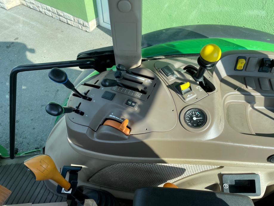 Mjenjač: John Deere Powr Reverser 16/16, 40 km/h, električni reverzer s lijeve strane upravljača, ručice mjenjača s desne strane, elektro-hidraulična blokada diferencijala, hladnjak ulja, mokra spojka, Park Lock funkcija – mehanička blokada mjenjača u parkirnom položaju, sekundarna parkirna kočnica, sigurnosni prekidač paljenja za neutralni položaj mjenjača