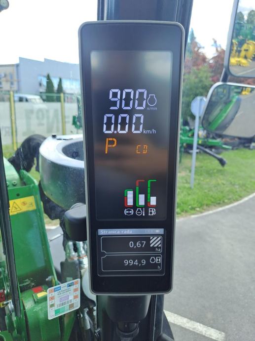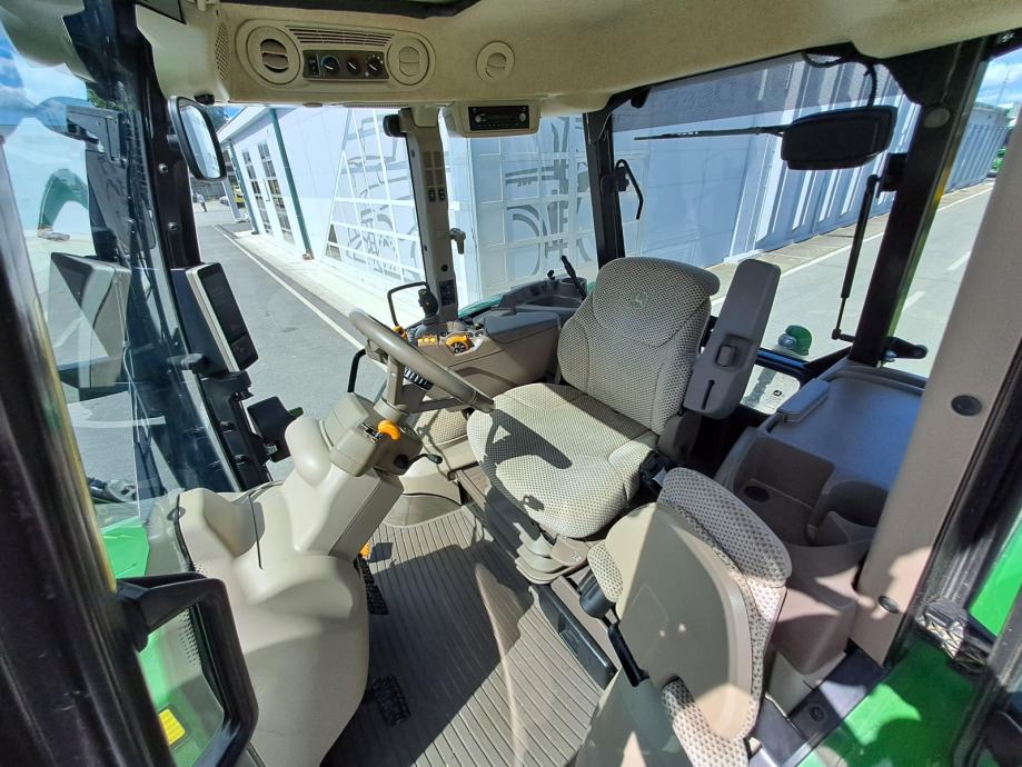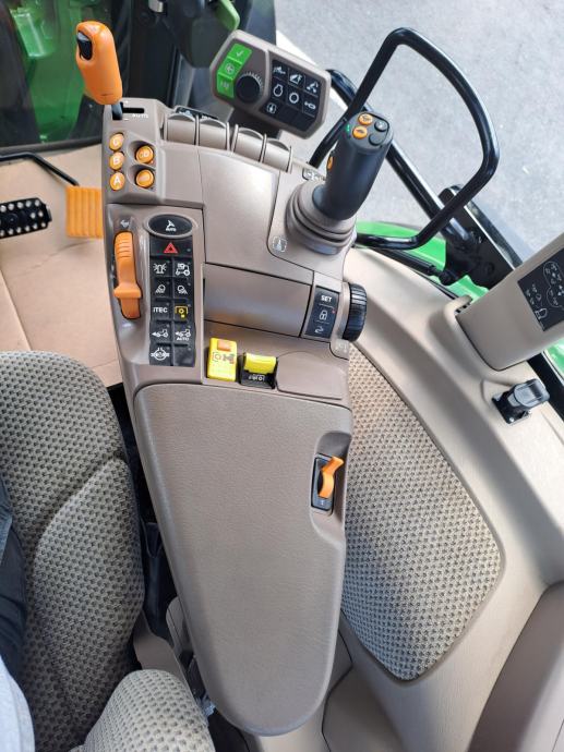 Mjenjač: John Deere Command8 32/16, 40 km/h, Automatski mjenjač s elektronskim prebacivanjem brzina i stupnjeva bez uporabe kvačila; električni reverzer s lijeve strane upravljača, ručice mjenjača s desne strane, elektro-hidraulična blokada diferencijala, hladnjak ulja, mokra spojka, Park Lock funkcija – mehanička blokada mjenjača u parkirnom položaju