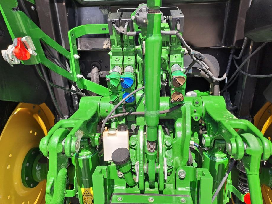 3-točkovni ovjes: EHR elektro-hidraulično upravljanje stražnjom hidraulikom, donje stražnje podizne poluge s kukama kat. 2, maks.kapacitet dizanja 5.300 kg na kuglama, 80 mm cilindri, šine za poteznicu podesive, donja poteznica, osjetnici vučne sile, lijeva i desna stabilizatorska poluga, mehanička centralna poluga kategorije 2, upravljanje stražnjom hidraulikom preko lijevog blatobrana