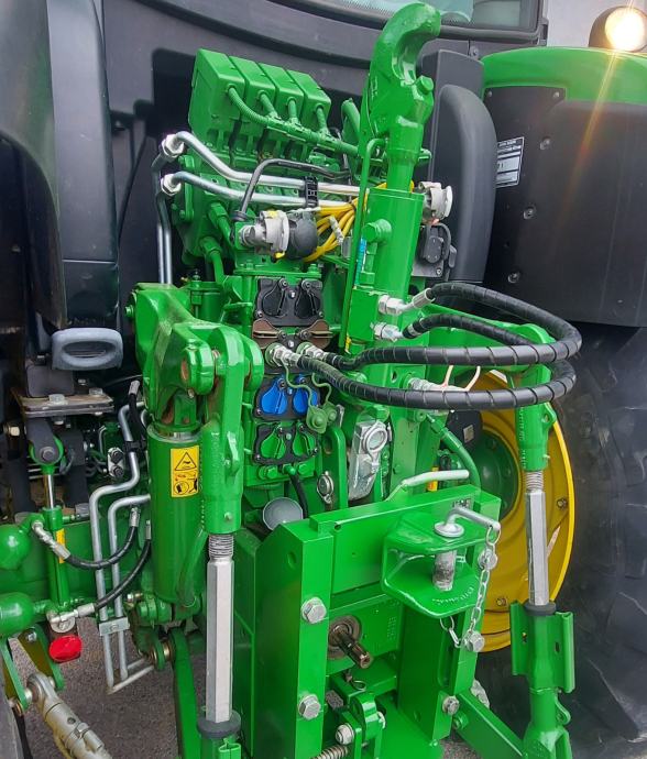 3-točkovni ovjes i poteznice: elektro-hidraulična kontrola EHR, donje stražnje podizne poluge s kukama kat. 3N, maks.kapacitet dizanja 6000 kg na kuglama, kontrola vučne sile, podesiva visina dizanja, brzina spuštanja, dubina spuštanja, vanjski prekidači na stražnjim blatobranima za dizanje/spuštanje stražnjih podiznih poluga