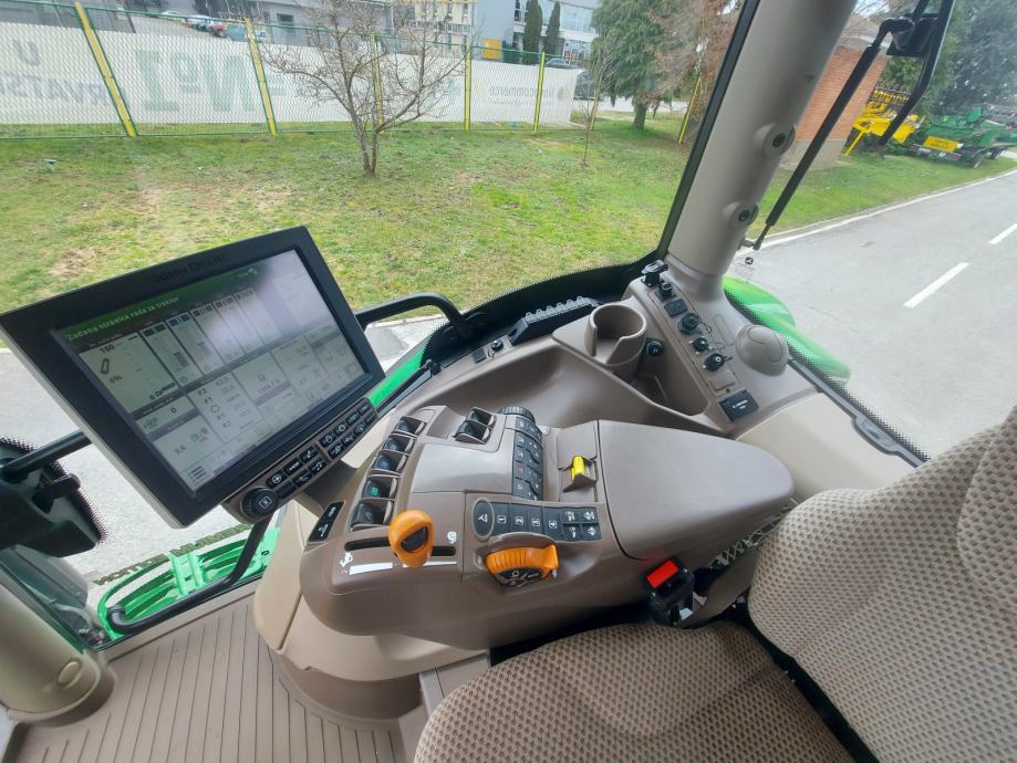 Kabina: Premium ComfortView Cab sa hidro-pneumatskom suspenzijom, sa klima uređajem i CommandArm upravljačkom konzolom, teleskopski vanjski retrovizori, lijevi i desni, Premium vozačko sjedalo sa zračnom suspenzijom, Premium radio, Generation 4 CommandCenter 4600 displej 10" (25,4 cm Touchscreen), brisač prednjeg stakla s pranjem, sjenilo za sunce, 2 slota u krovnoj oblozi kabine, pretinac za odlaganje stvari (npr.kutija za prvu pomoć) u krovu, vanjski priključci za pomoćne kablove za paljenje, prolaz za kablove straga, unutrašnje osvjetljenje, kukica za odjeću, gumeni tepih, nagibna kabina, 330° vidljivost uokolo, ručni i nožni gas, pretinac na lijevom blatobranu, aktivni hladnjak